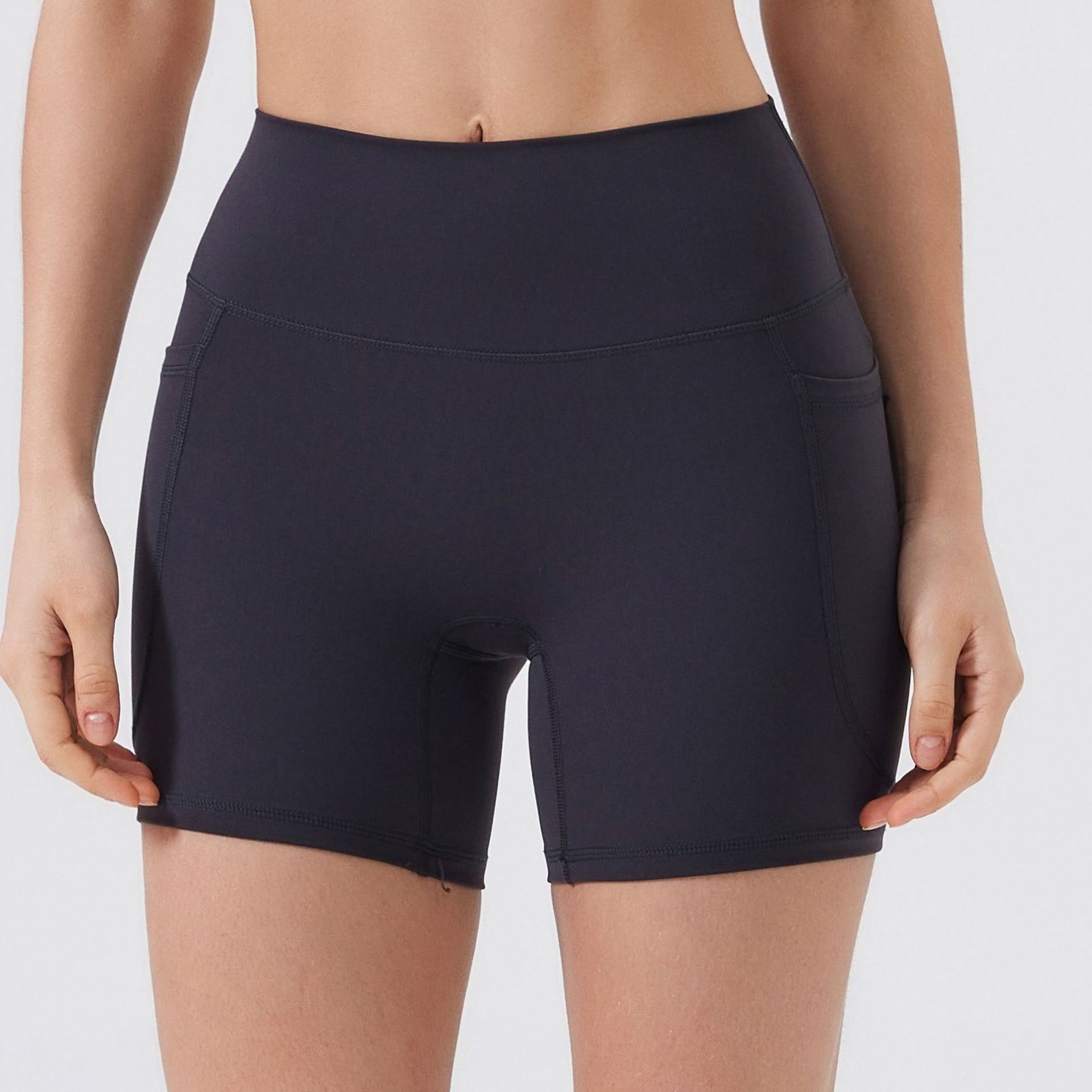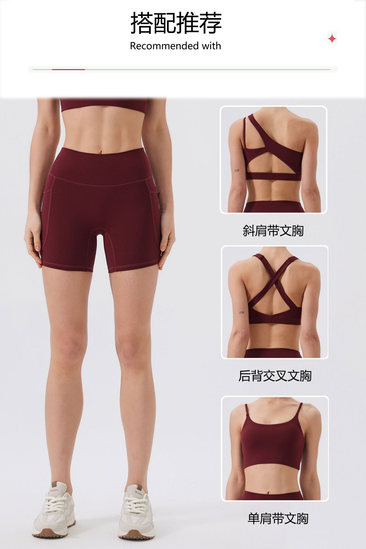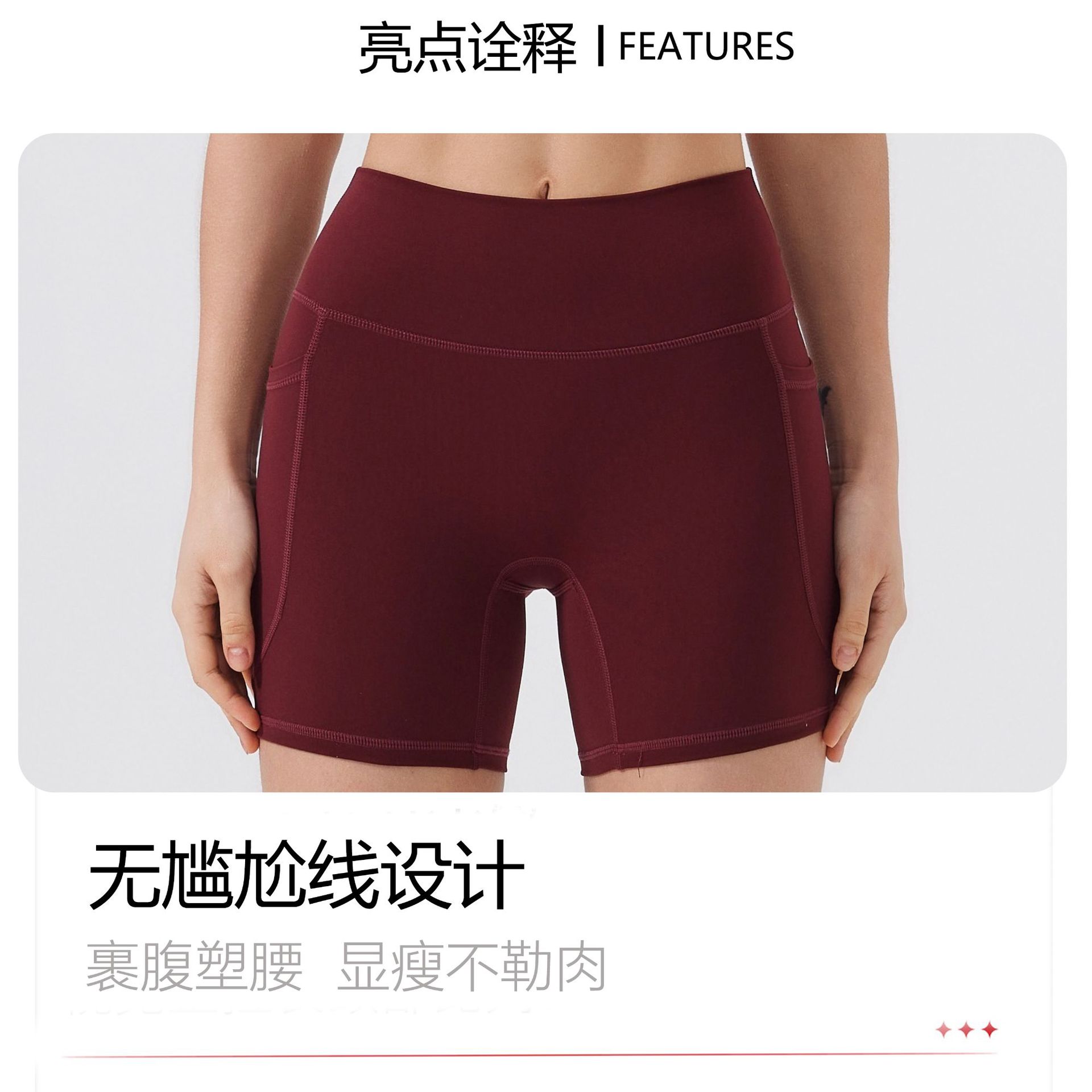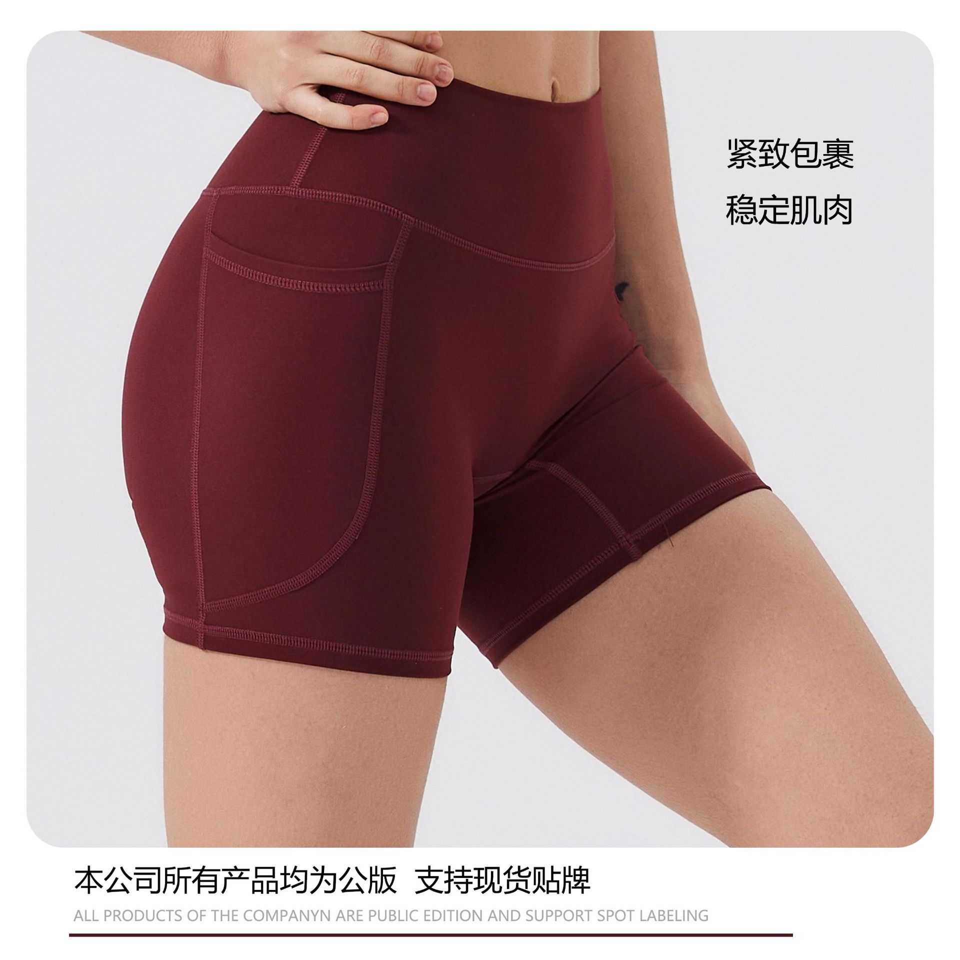 여름 빠른 건조 알몸 스포츠 반바지 높은 허리 타이트 요가 바지 포켓 통기성 달리기 피트니스 사이클링 반바지