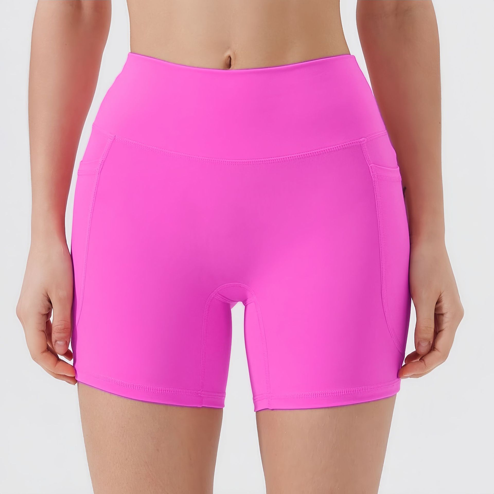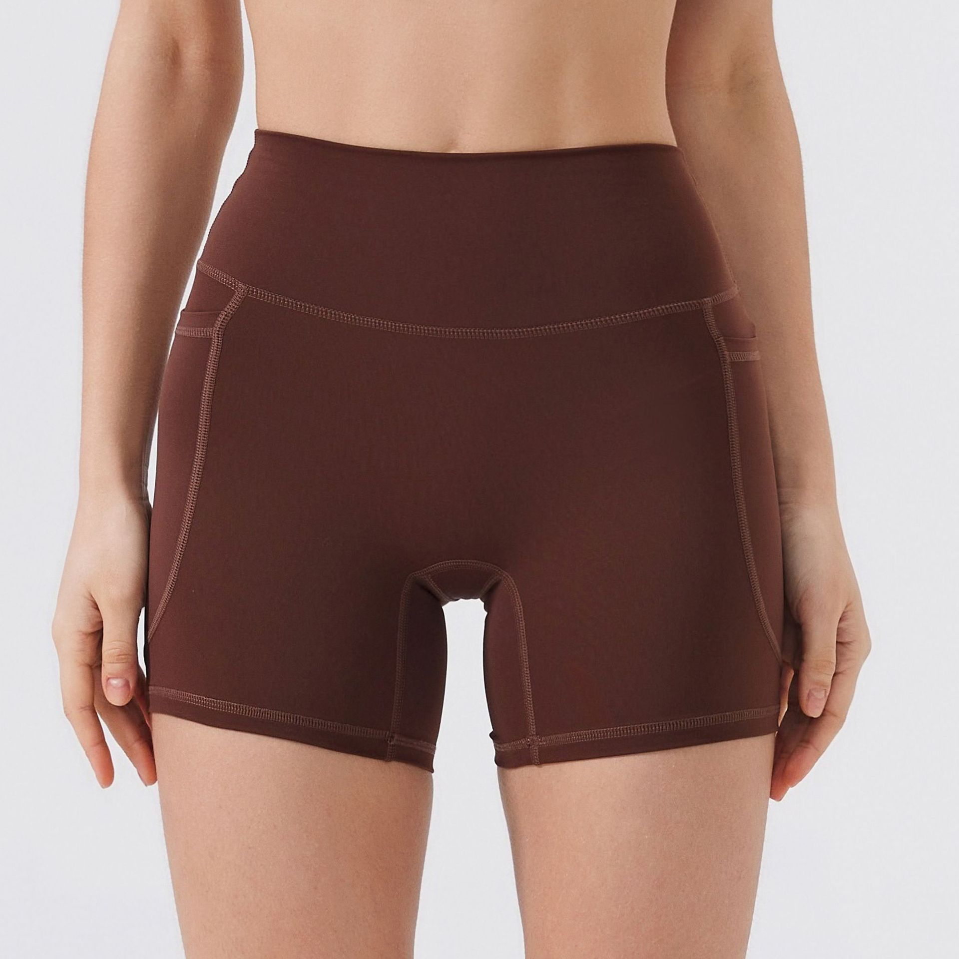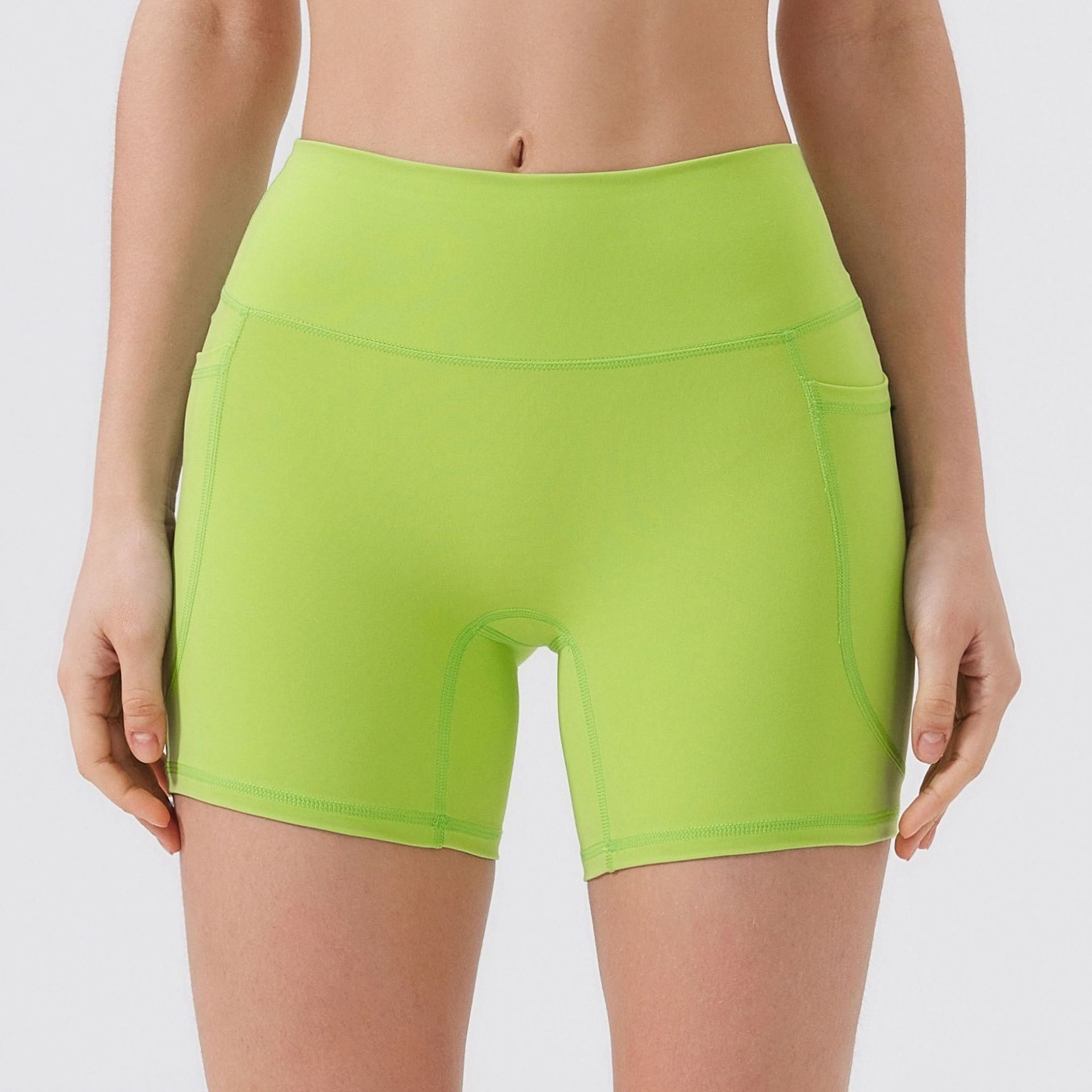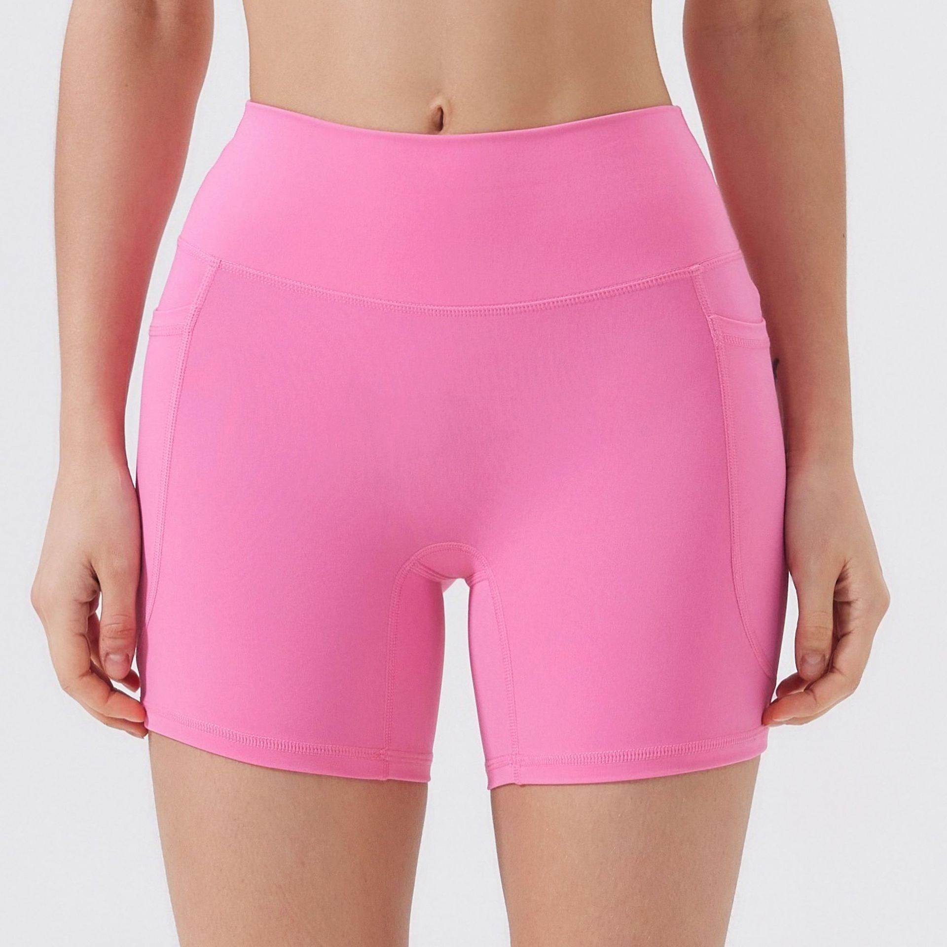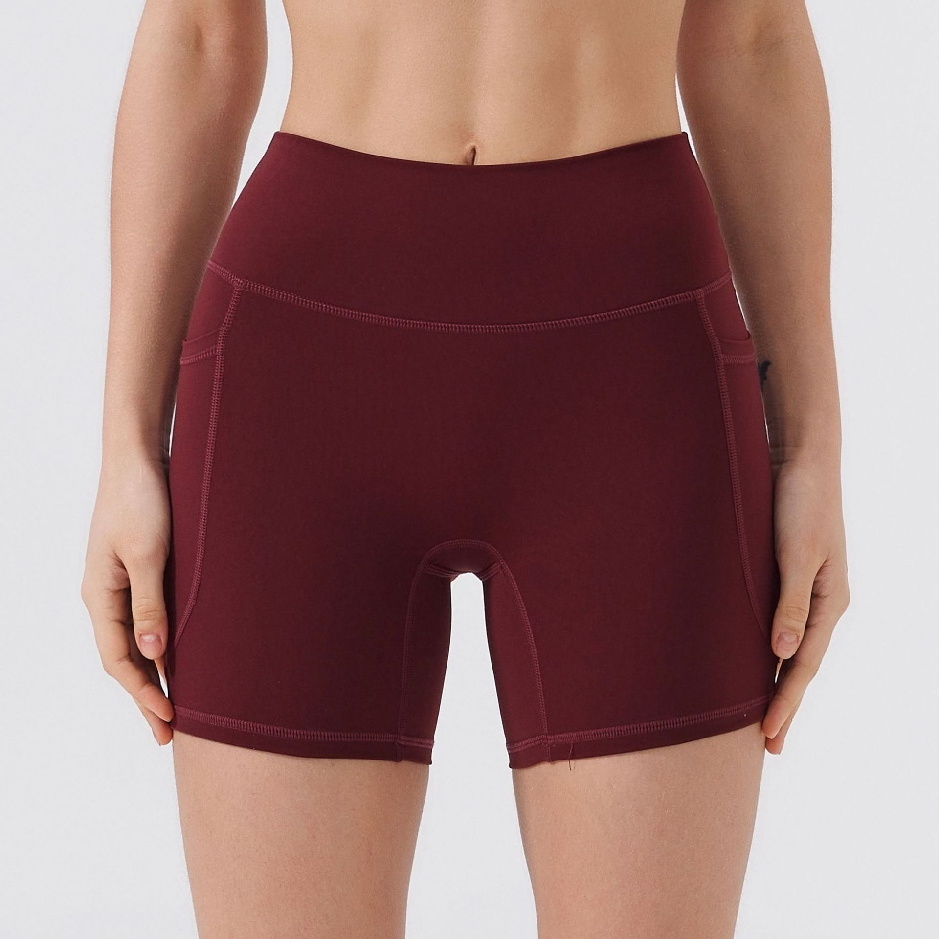 여름 빠른 건조 알몸 스포츠 반바지 높은 허리 타이트 요가 바지 포켓 통기성 달리기 피트니스 사이클링 반바지