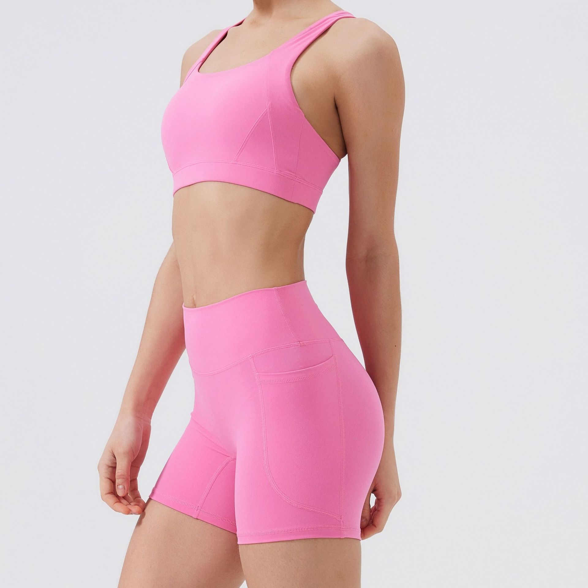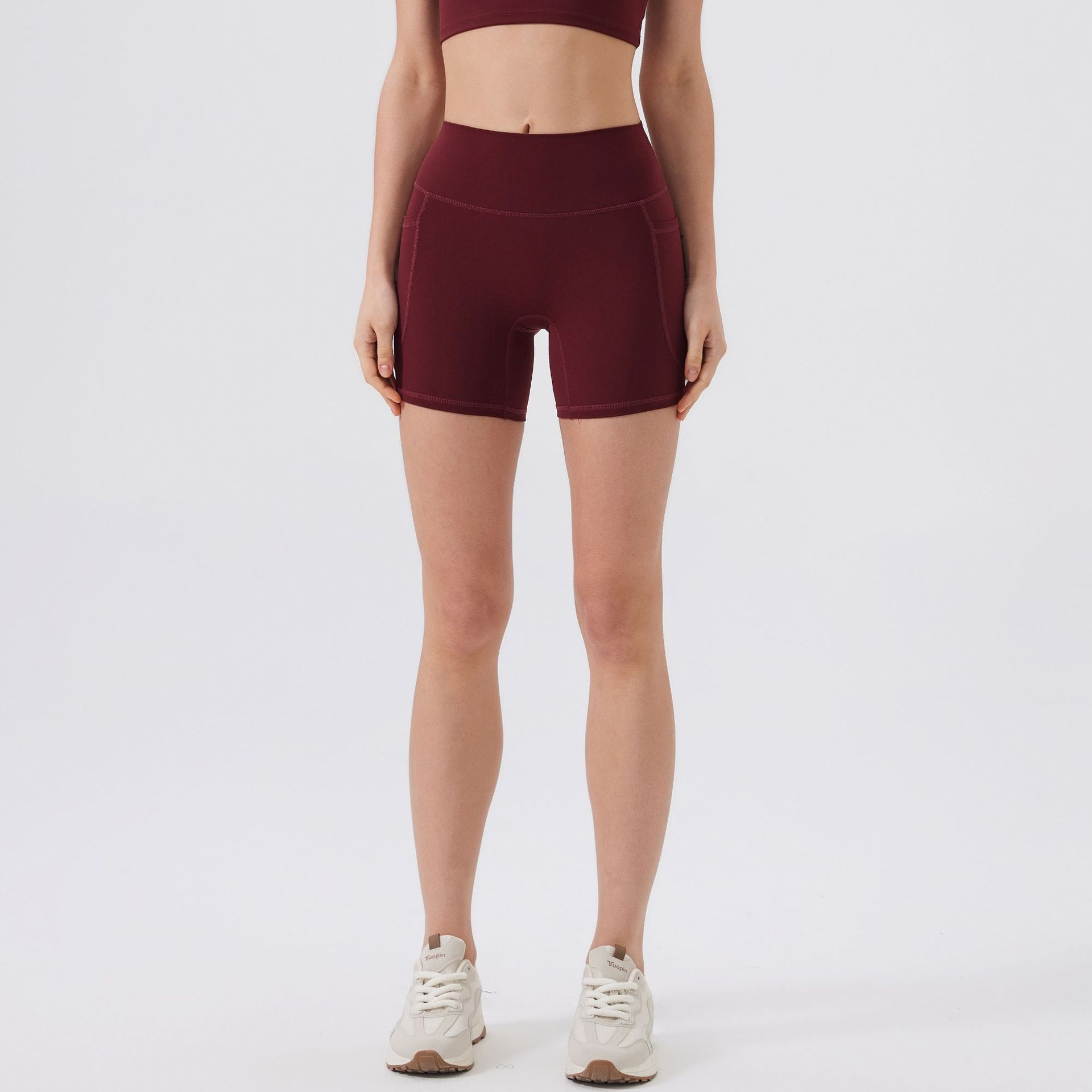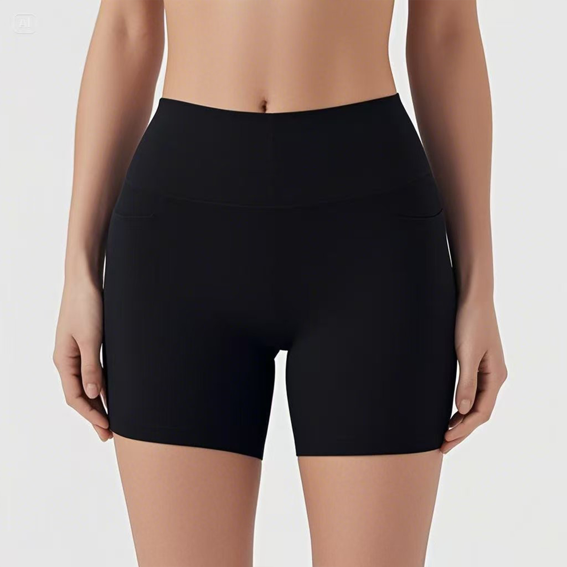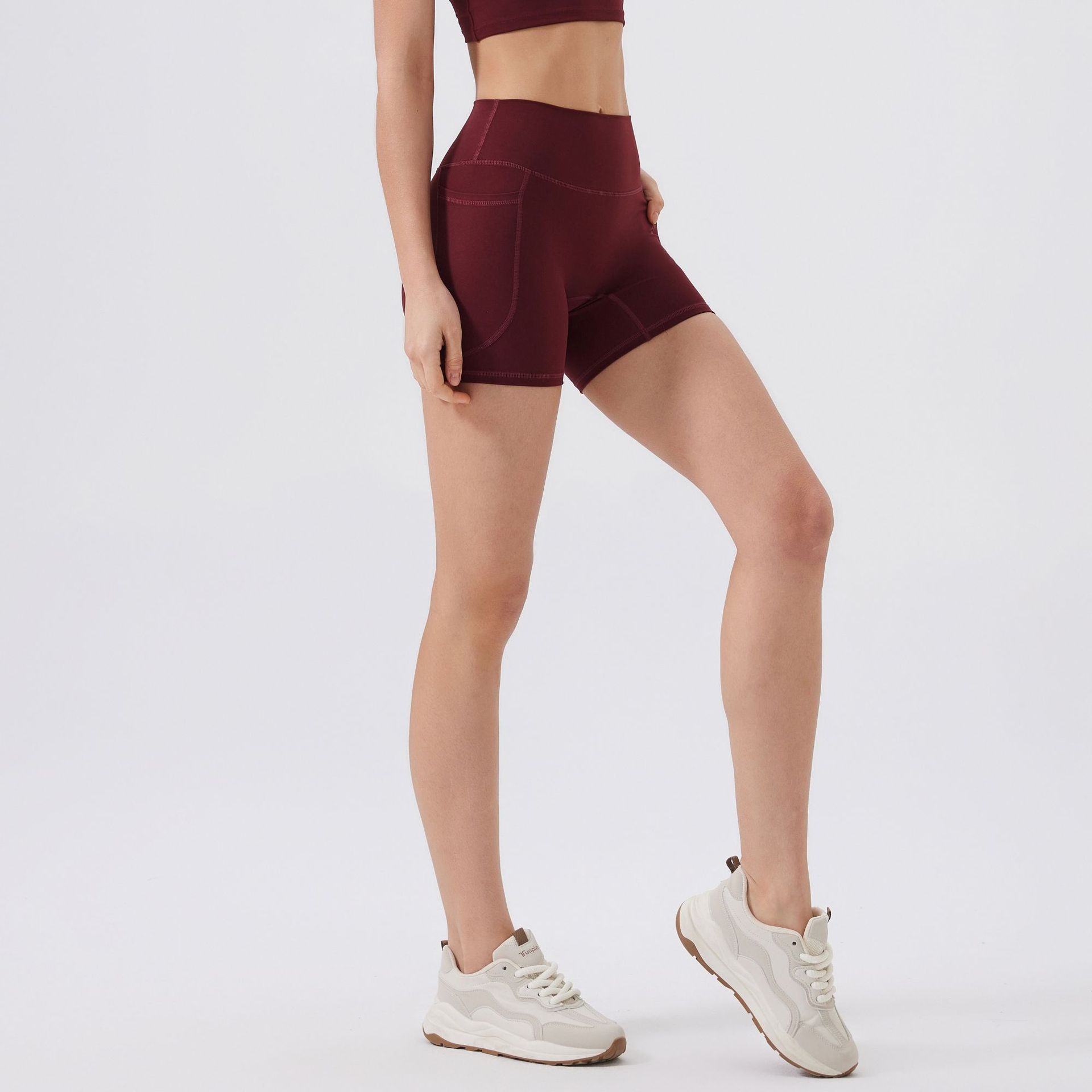 여름 빠른 건조 알몸 스포츠 반바지 높은 허리 타이트 요가 바지 포켓 통기성 달리기 피트니스 사이클링 반바지