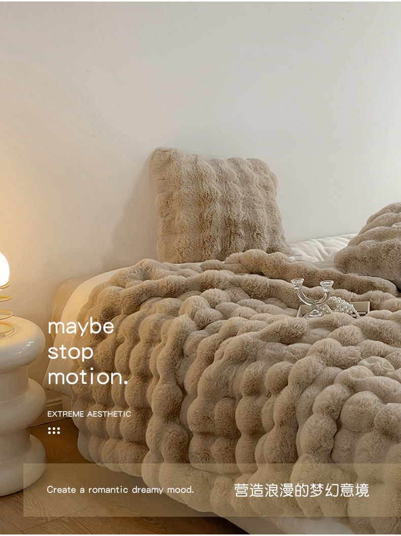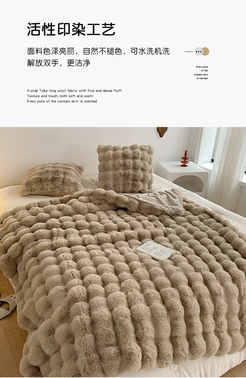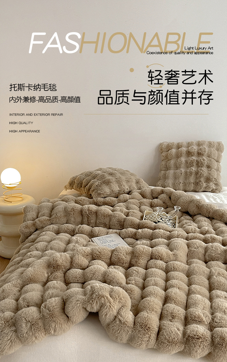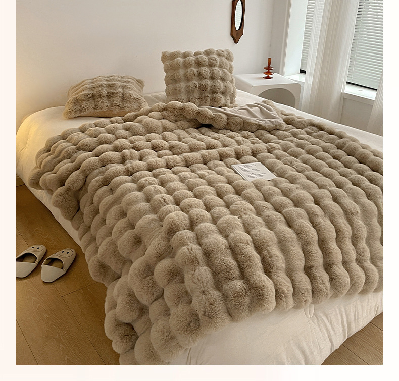 토스카나 모조 토끼 모피 짧은 양털 캐주얼 커버 담요 빛 고급 고급 소파 담요 부드러운 따뜻한 양털 담요 침실스토어 가기