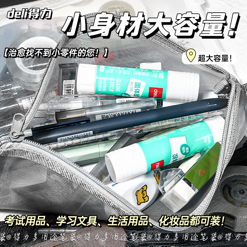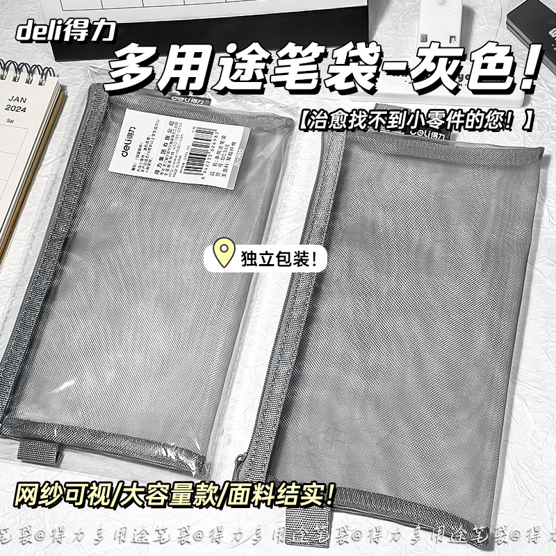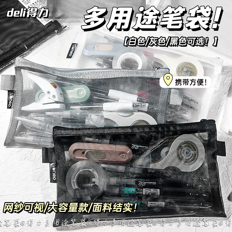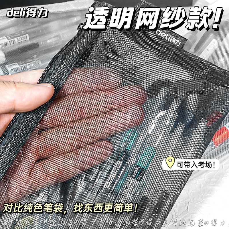 학생 시험 보관을위한 델리 간단한 투명 메쉬 연필 가방 대용량 연필 가방 보관을위한 특수 휴대용 연필 가방