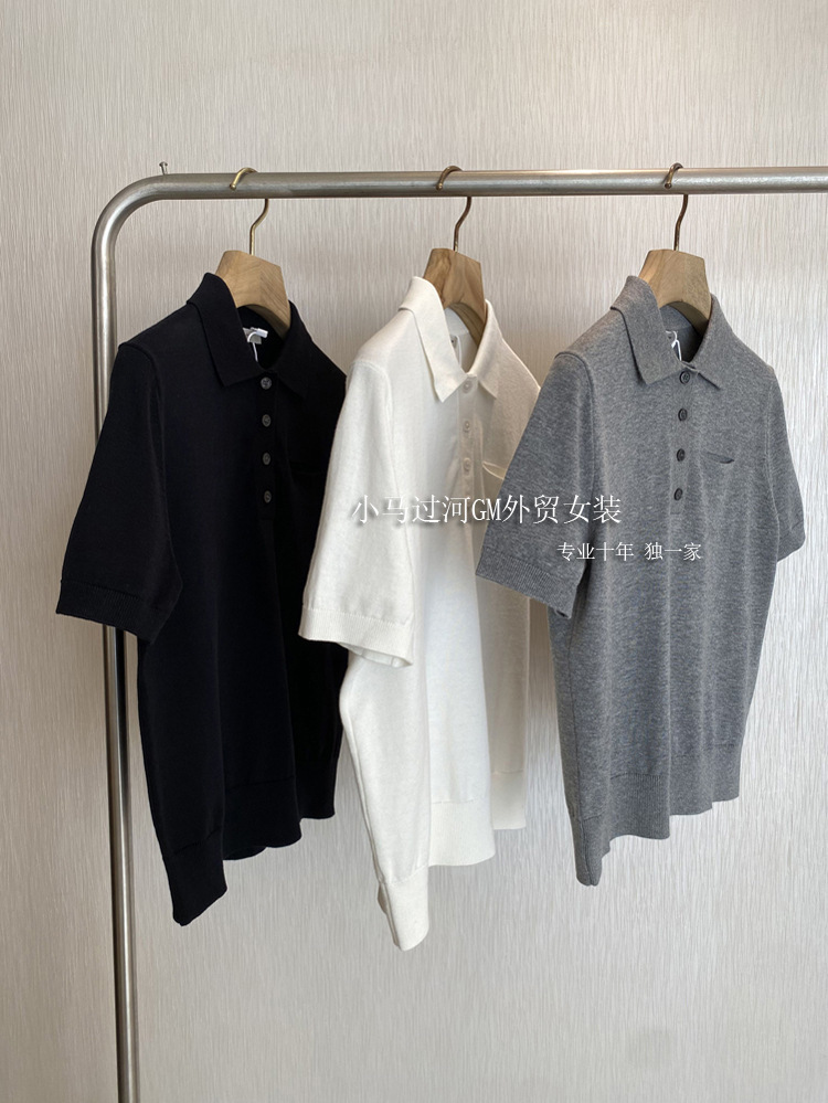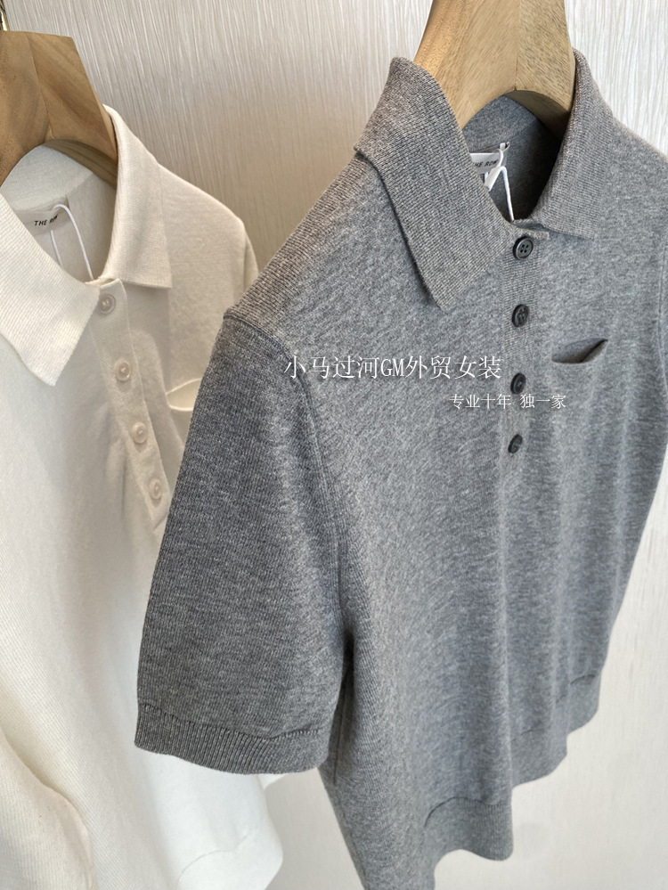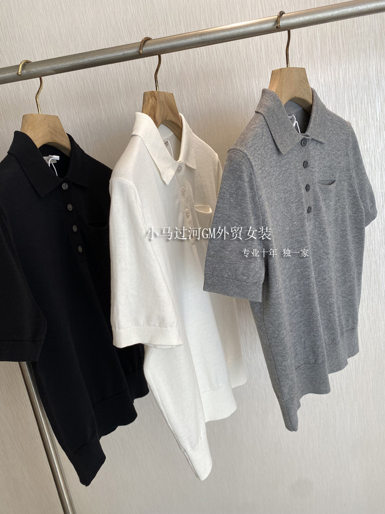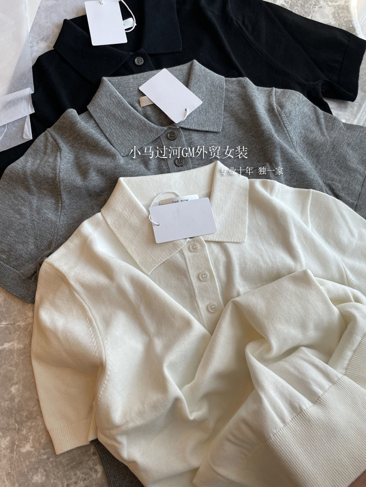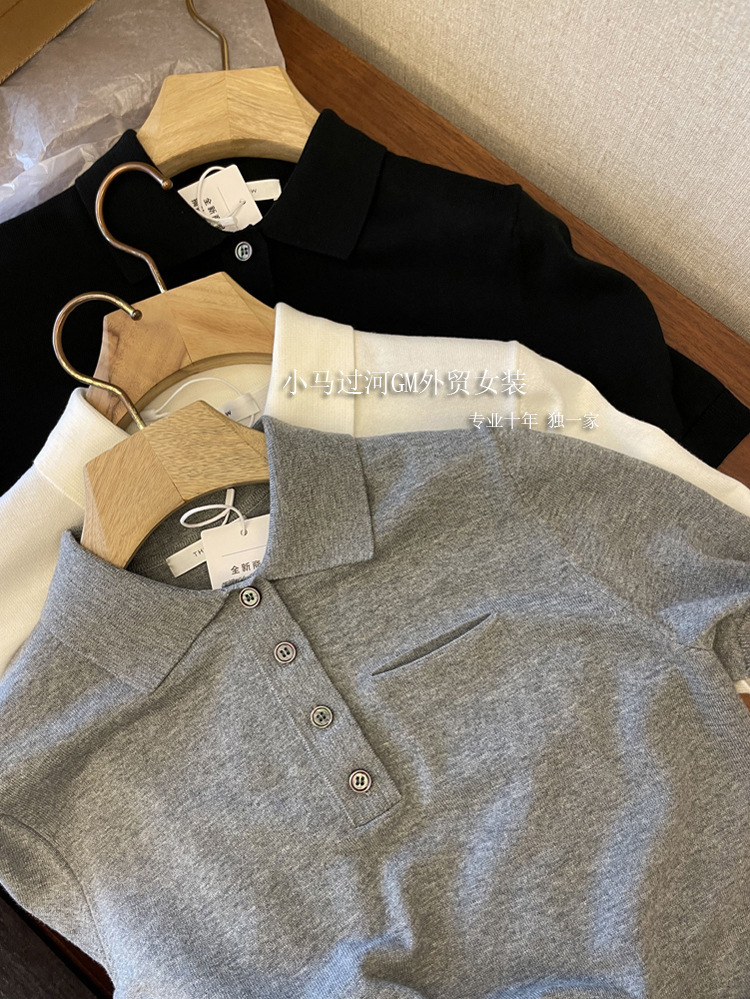 爆爱!!狂迷人的领子和气质,R*W法式polo领正肩显瘦短袖针织衫