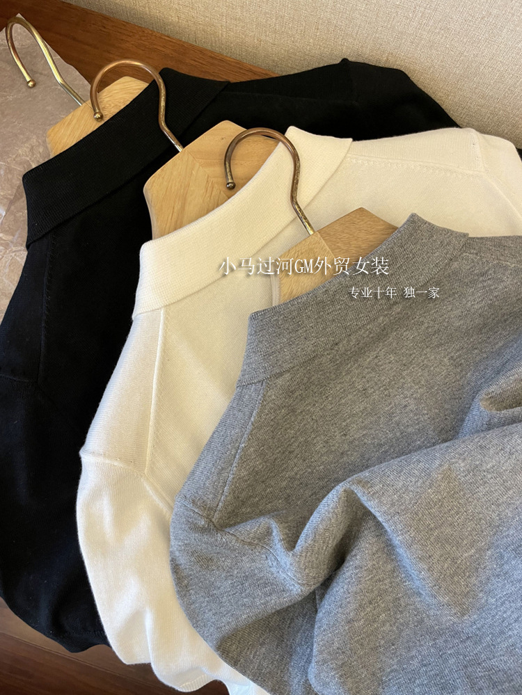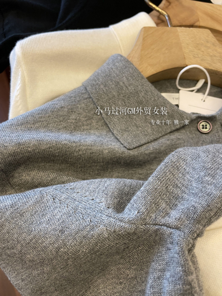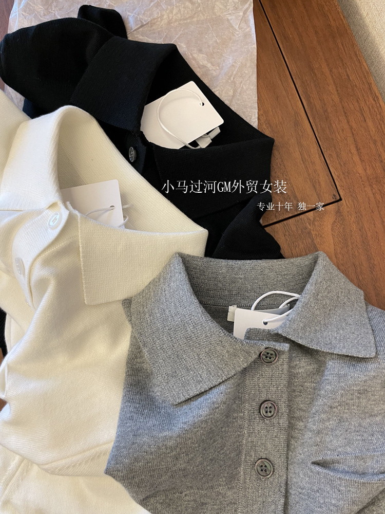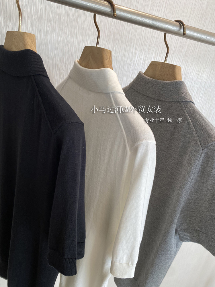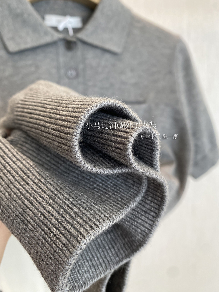 爆爱!!狂迷人的领子和气质,R*W法式polo领正肩显瘦短袖针织衫