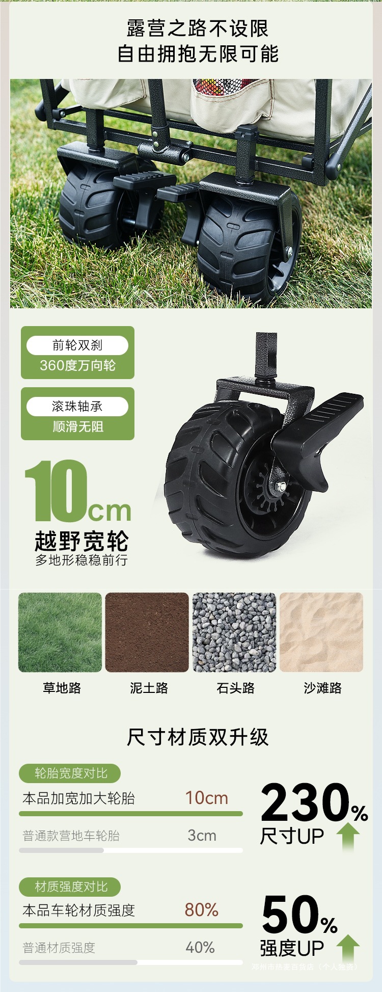 • 16호 업그레이드 및 대형화 : 전지형 탄성 오프로드 휠 + 더블 브레이크 + 베어링 + 분해 청소 [카키색]