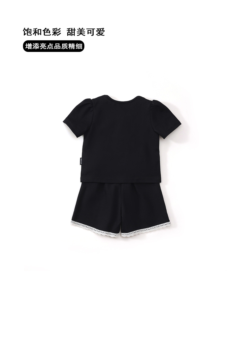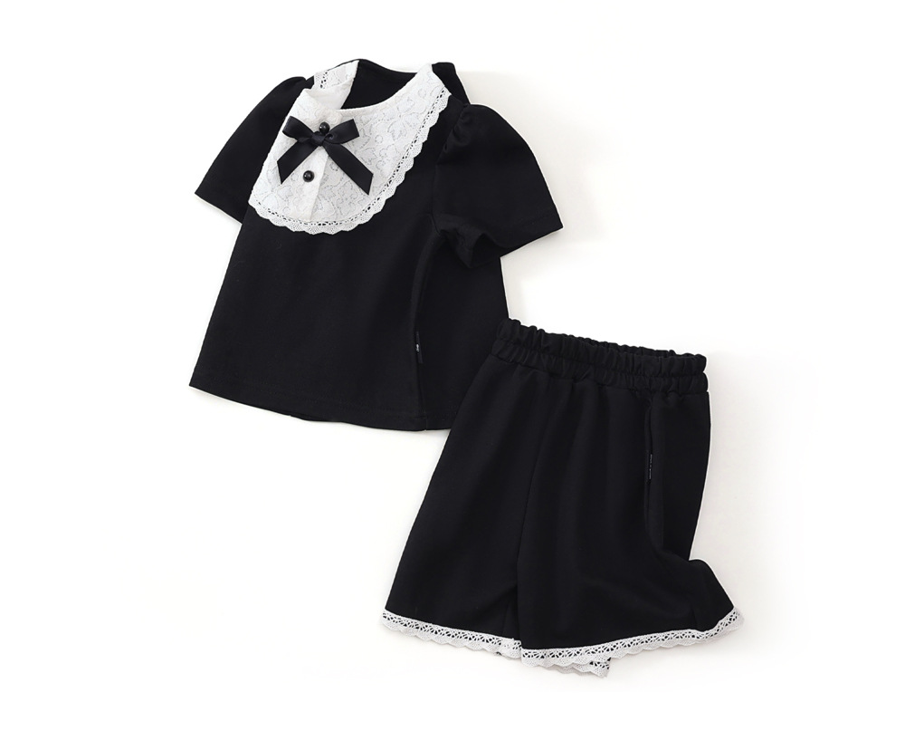 MDD 소녀 샤넬 스타일 세트 2025 여름 새로운 한국 스타일 활 레이스 짧은 소매 반바지 어린이 세트스토어 가기