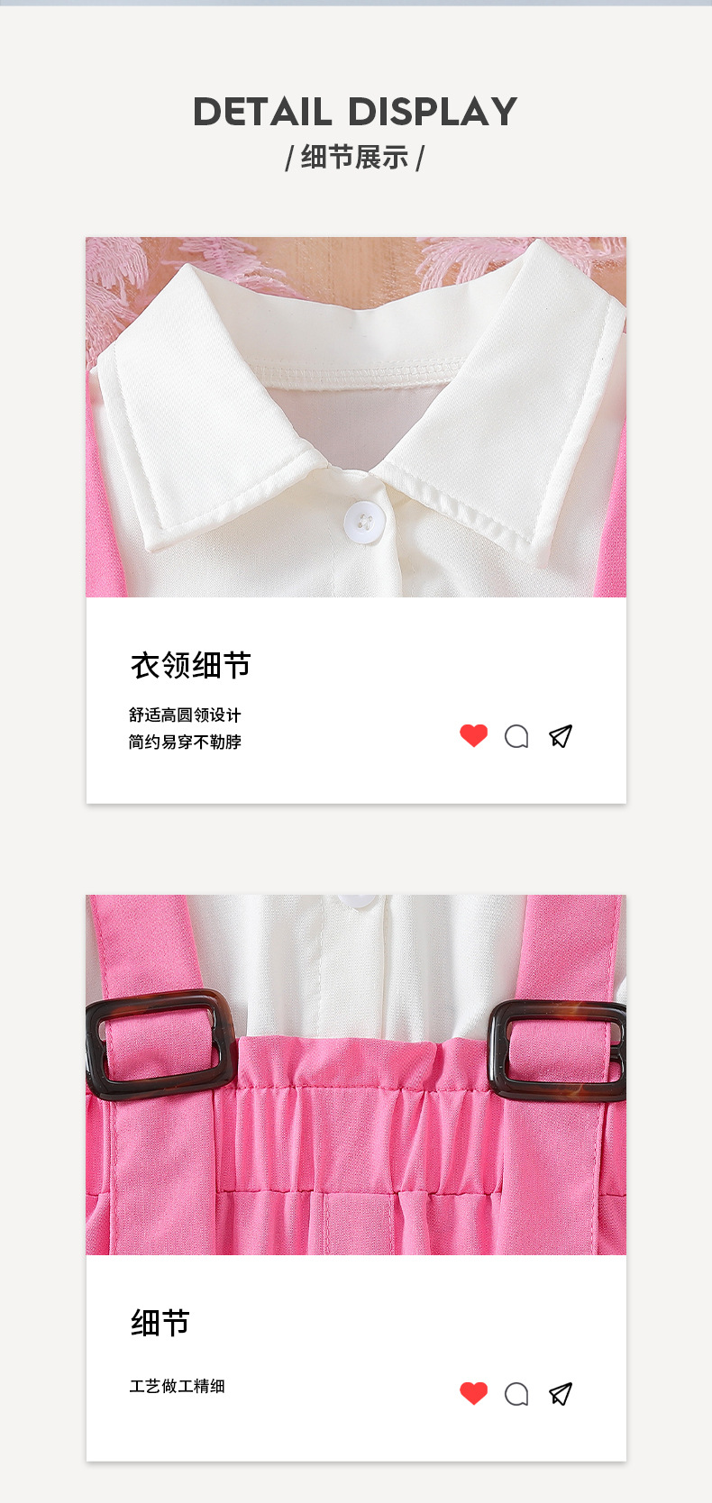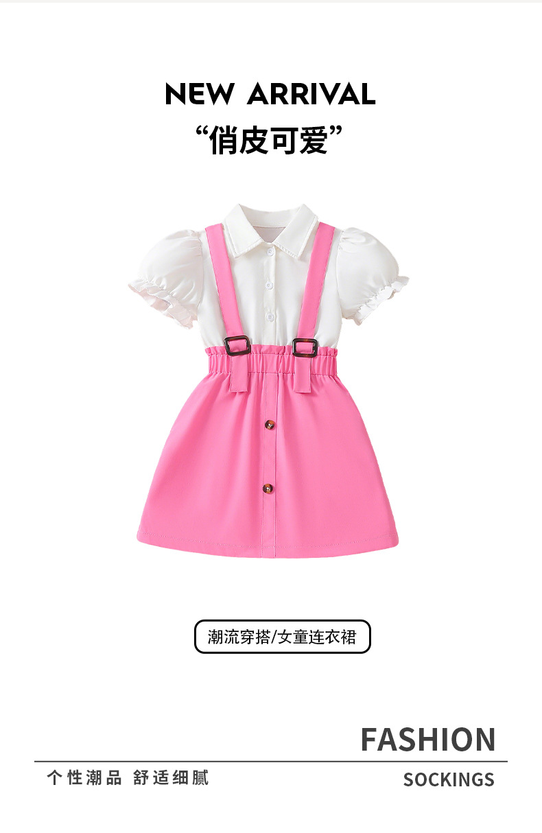 국경 간 소녀 가짜 투피스 원피스 핑크 스트랩 스티칭 랜턴 슬리브 화이트 셔츠 탑 귀여운 어린이 스커트스토어 가기