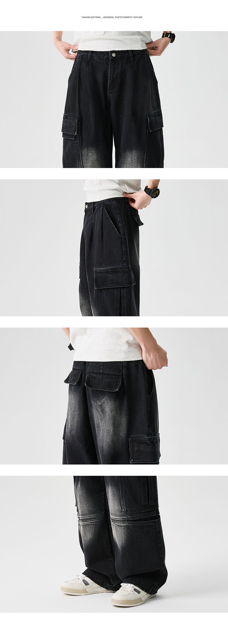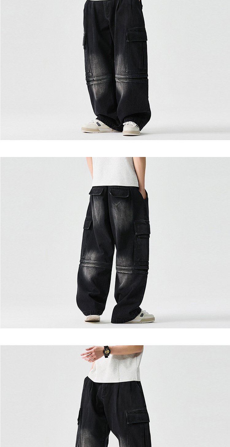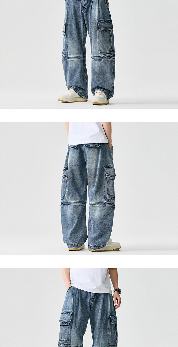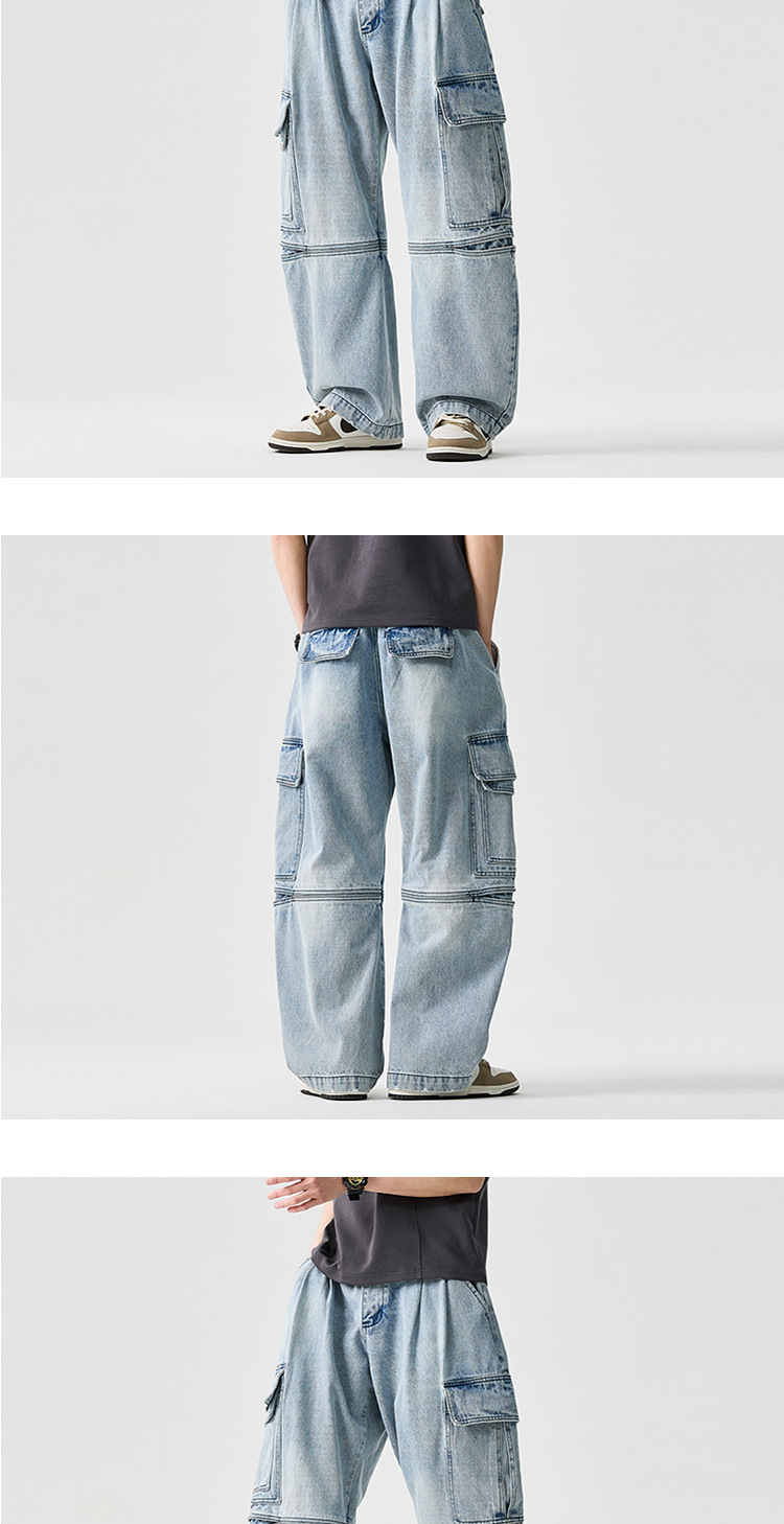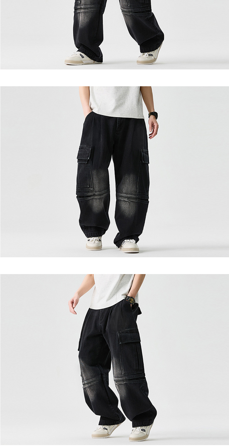 2025 여름 플러스 사이즈 일본식 미국 복고풍 하이 스트리트 작업복 청바지 캐주얼 바지 스플 라이스 멀티 포켓 남성 바지스토어 가기