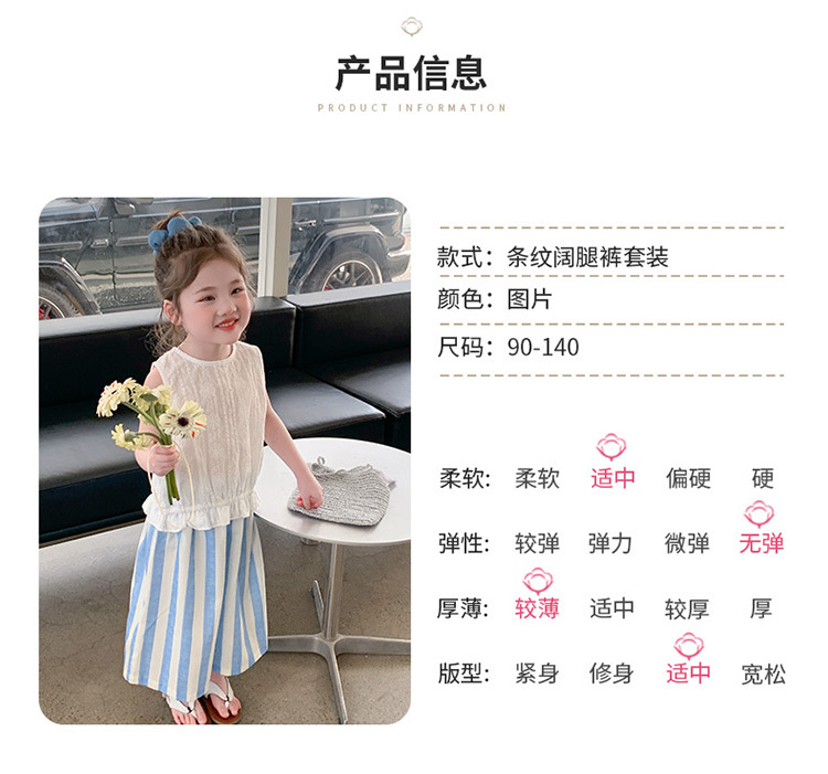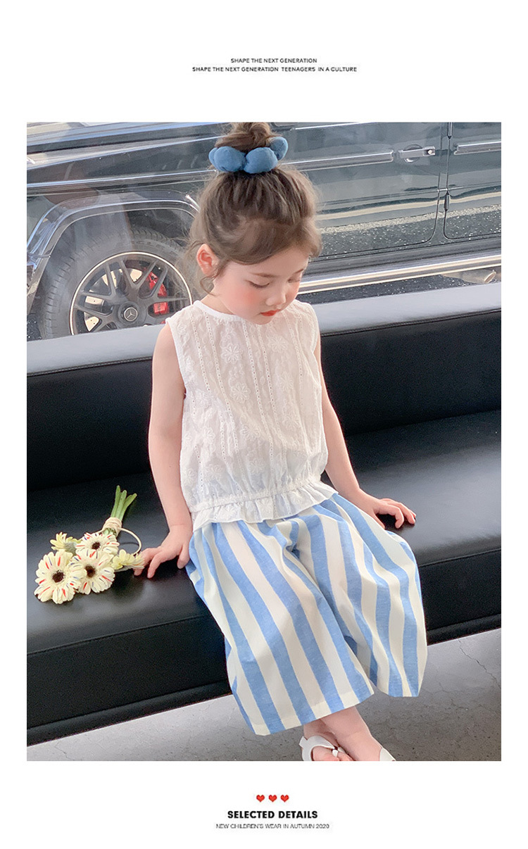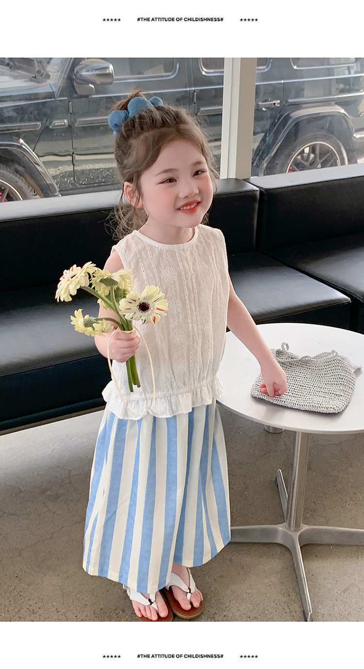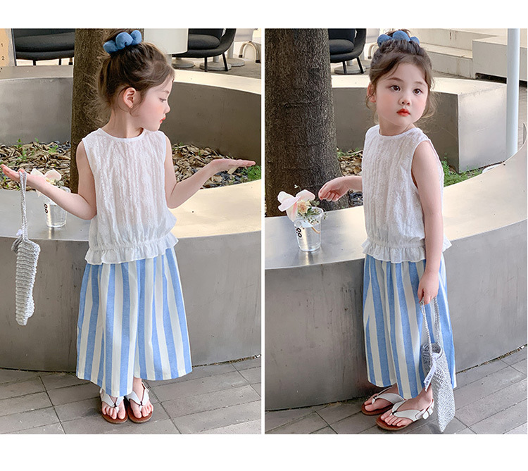 소녀 블루 수직 줄무늬 바지 세트 2025 여름 새로운 패션 소녀 세련된 투피스 어린이 여름 원피스스토어 가기