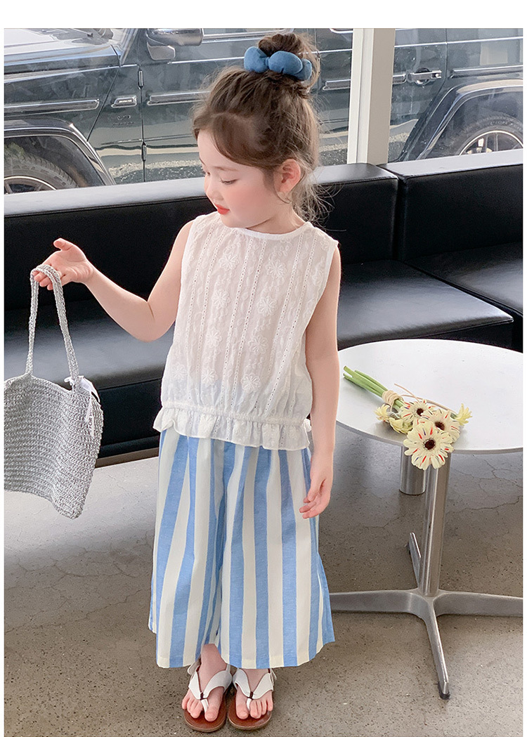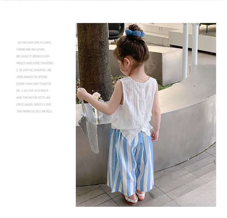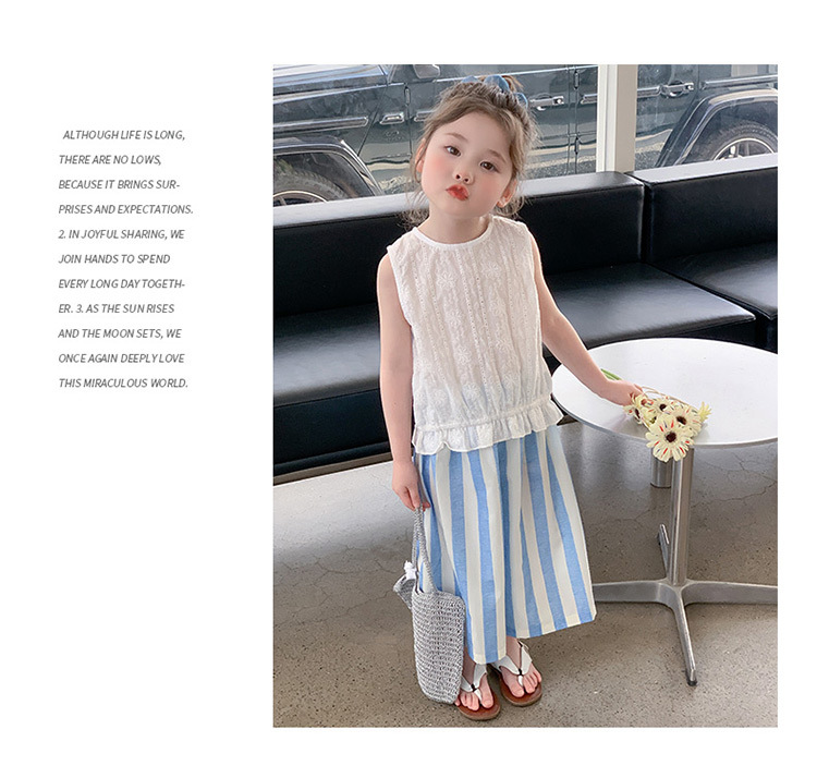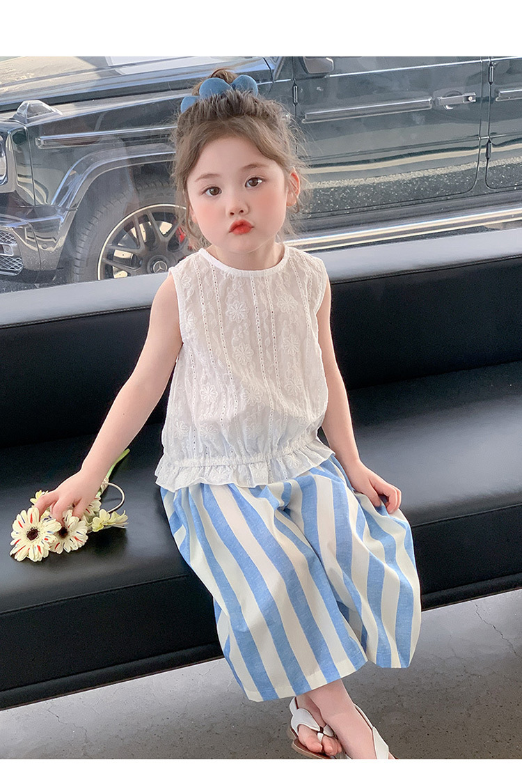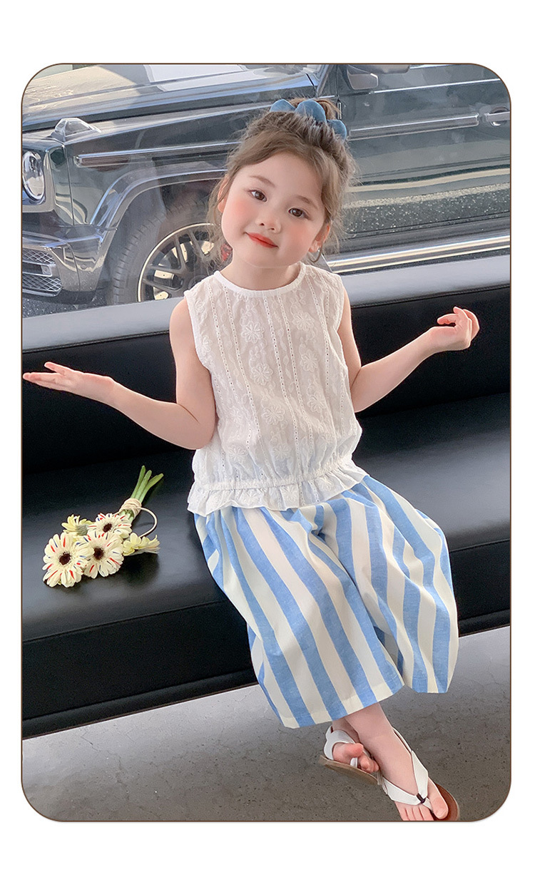 소녀 블루 수직 줄무늬 바지 세트 2025 여름 새로운 패션 소녀 세련된 투피스 어린이 여름 원피스스토어 가기