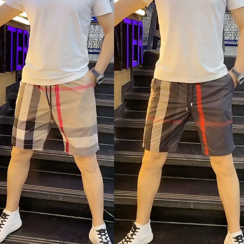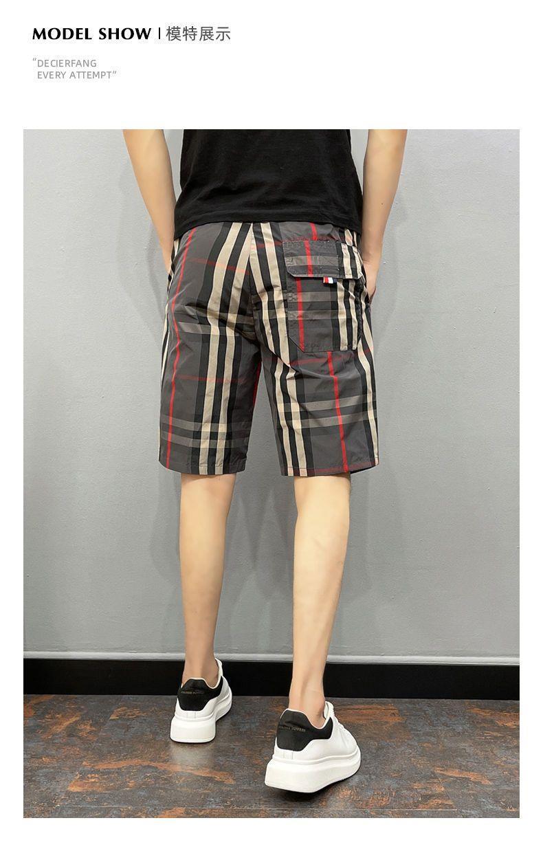 여름 아이스 실크 캐주얼 반바지 남자 경량 올매치 체크 무늬 5 점 바지 유행 빠른 건조 스포츠 바지스토어 가기