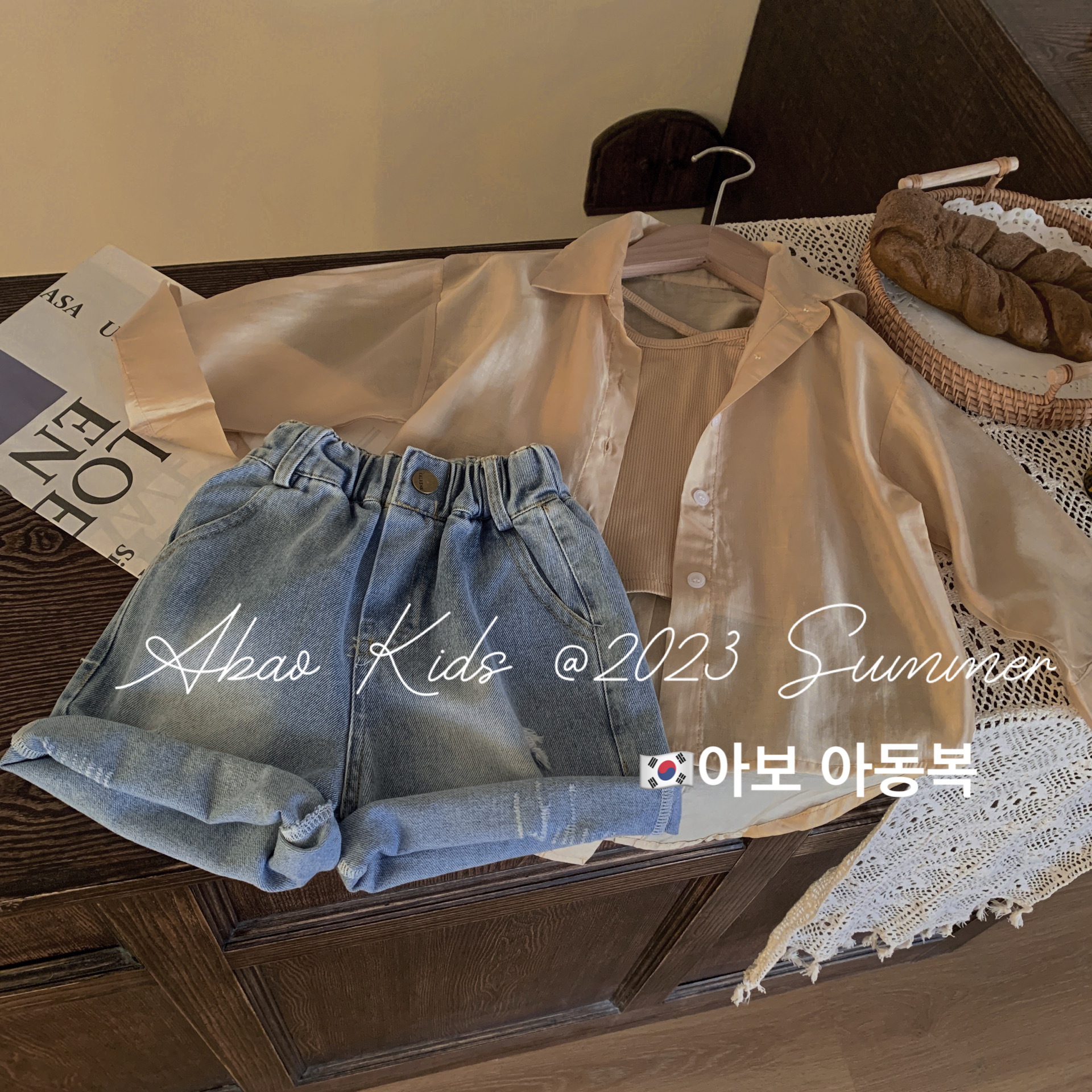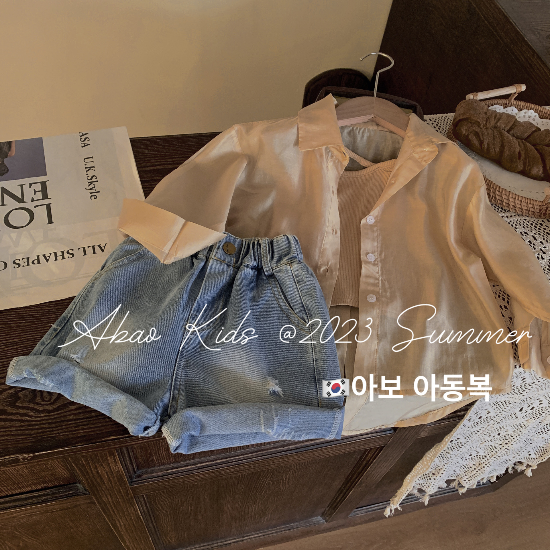 클리어런스가 반환되지 않습니다 [합리적인 주문] 소녀 선 스크린 셔츠 코트 캐미솔 데님 반바지를 변경하지 않습니다.