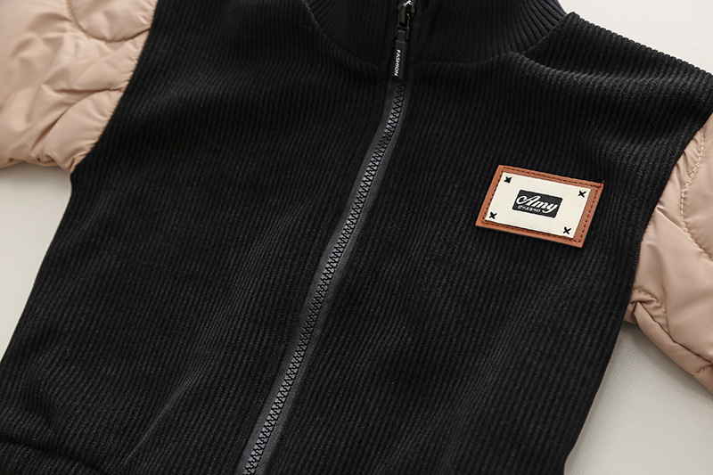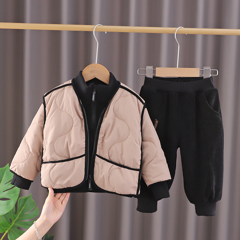 남자들의 가을과 겨울 옷 세트 2024 새로운 아기 아기 서양식 기모 패딩면 패딩 재킷 3 피스 아동복