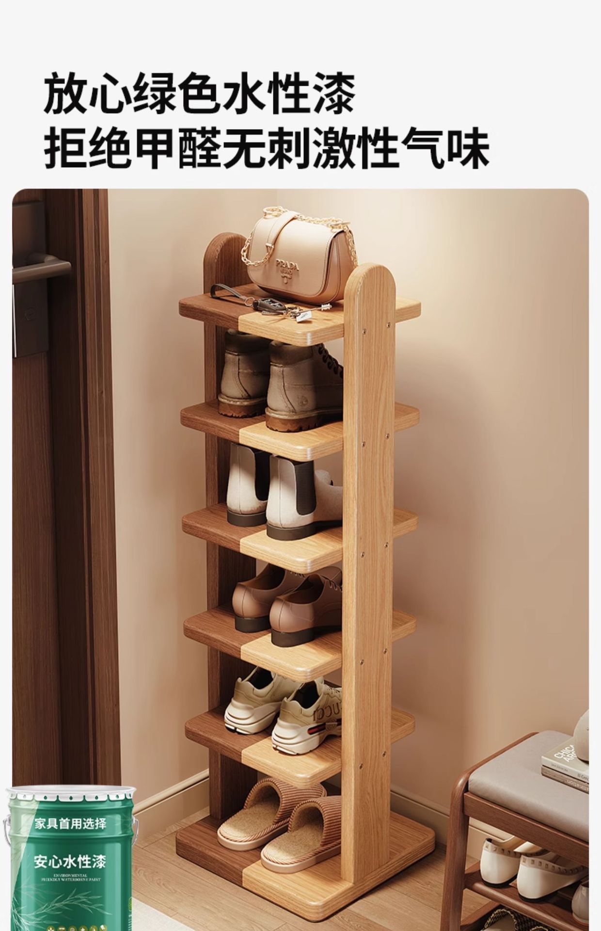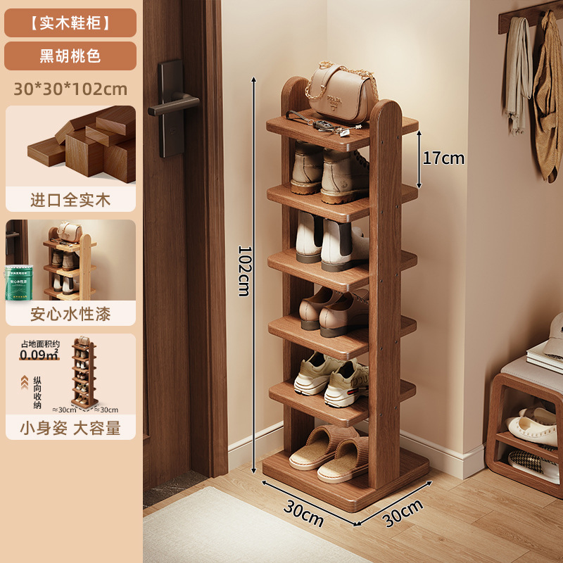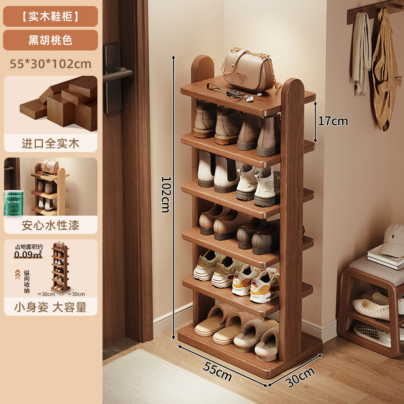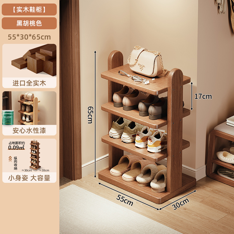 단단한 나무 신발장 다층 집 입구 작은 좁은 수납 선반 2025 새로운 간단한 공간을 차지하지 않는 신발장스토어 가기