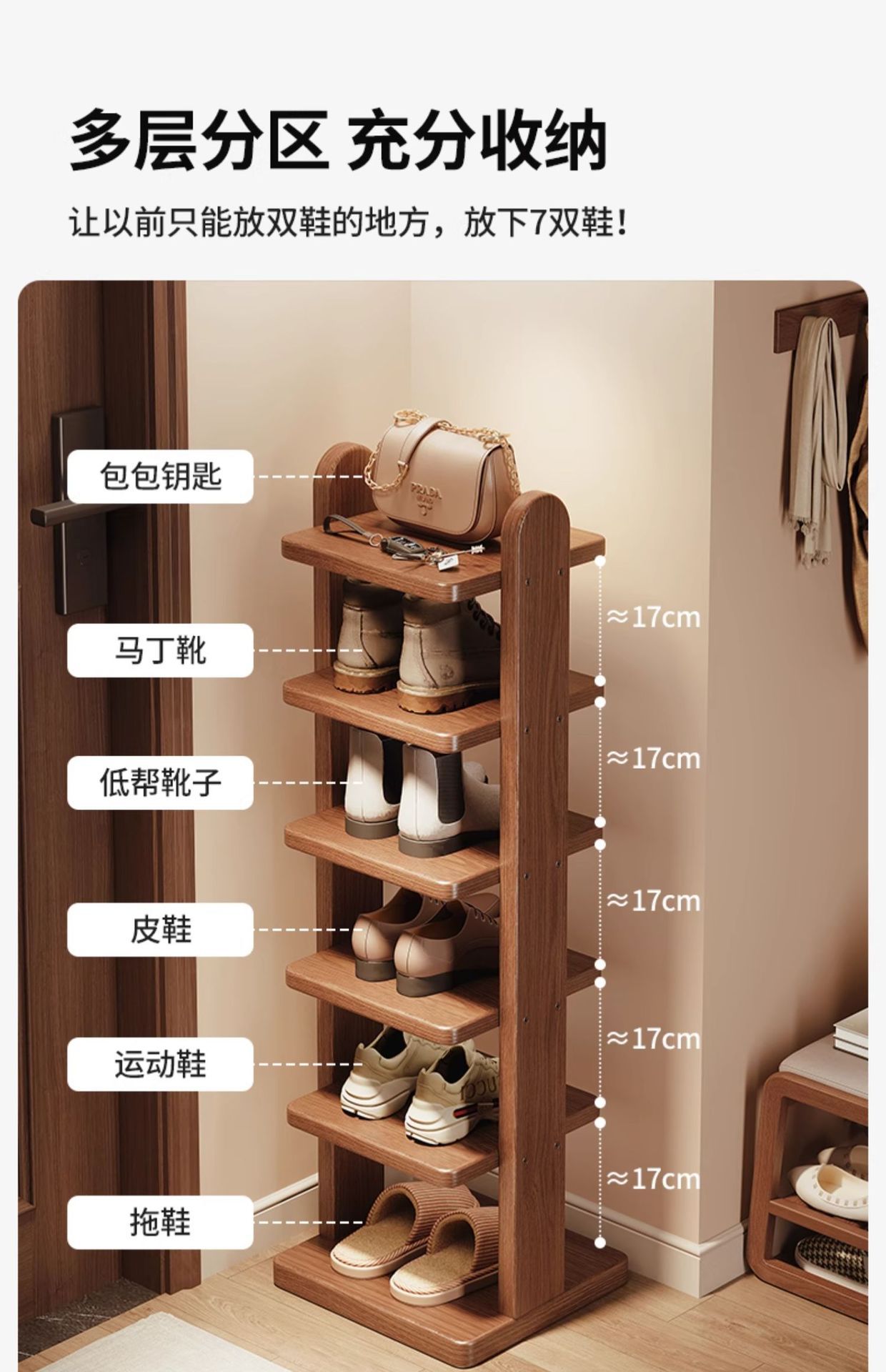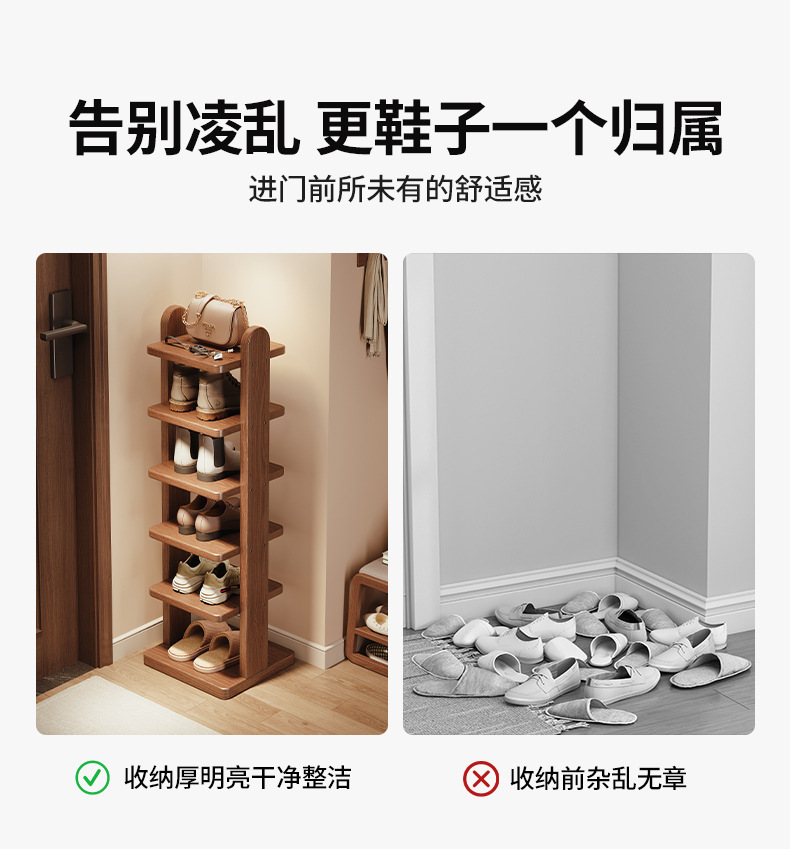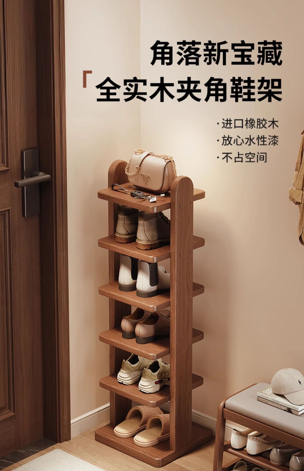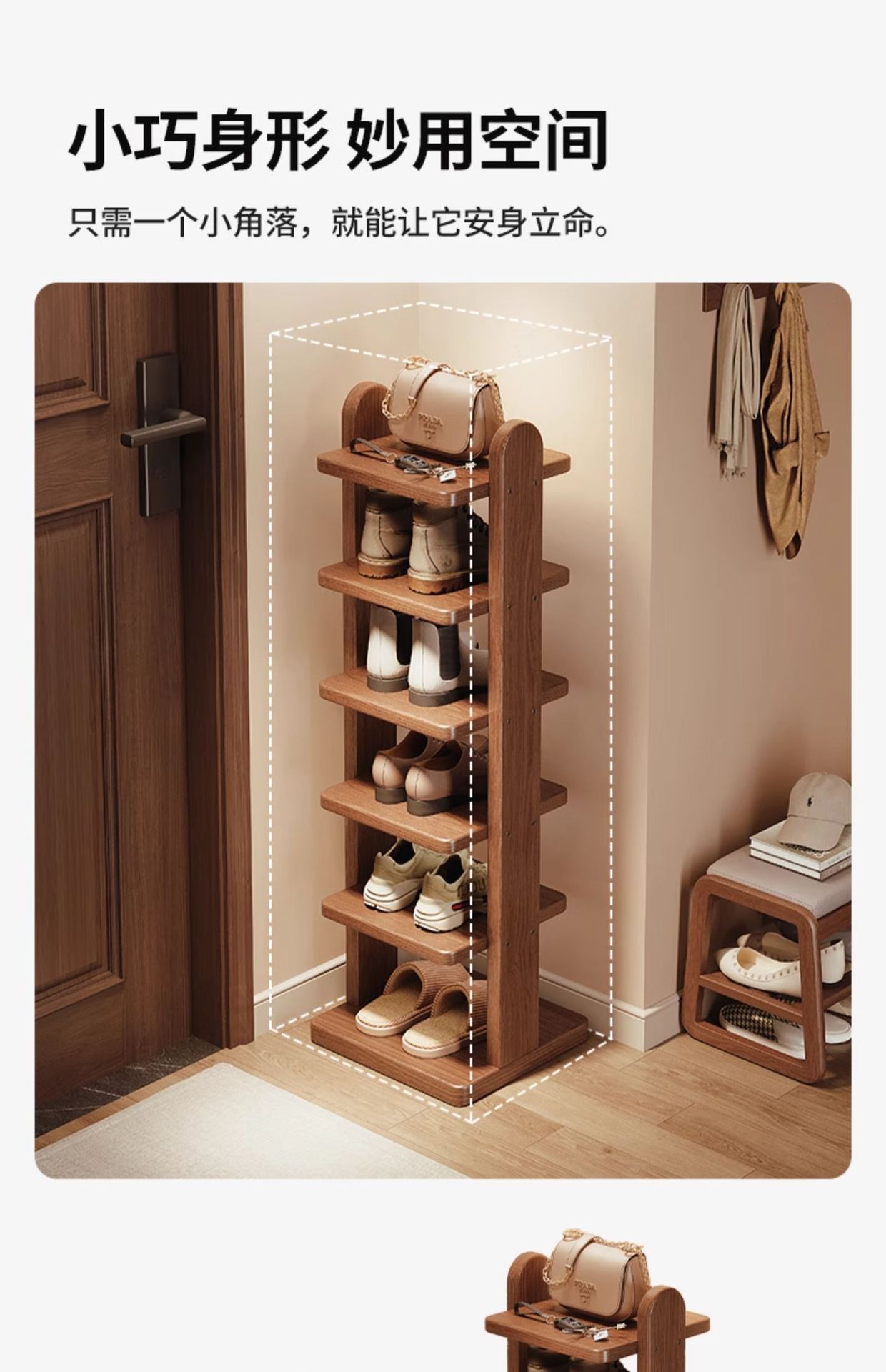 단단한 나무 신발장 다층 집 입구 작은 좁은 수납 선반 2025 새로운 간단한 공간을 차지하지 않는 신발장스토어 가기