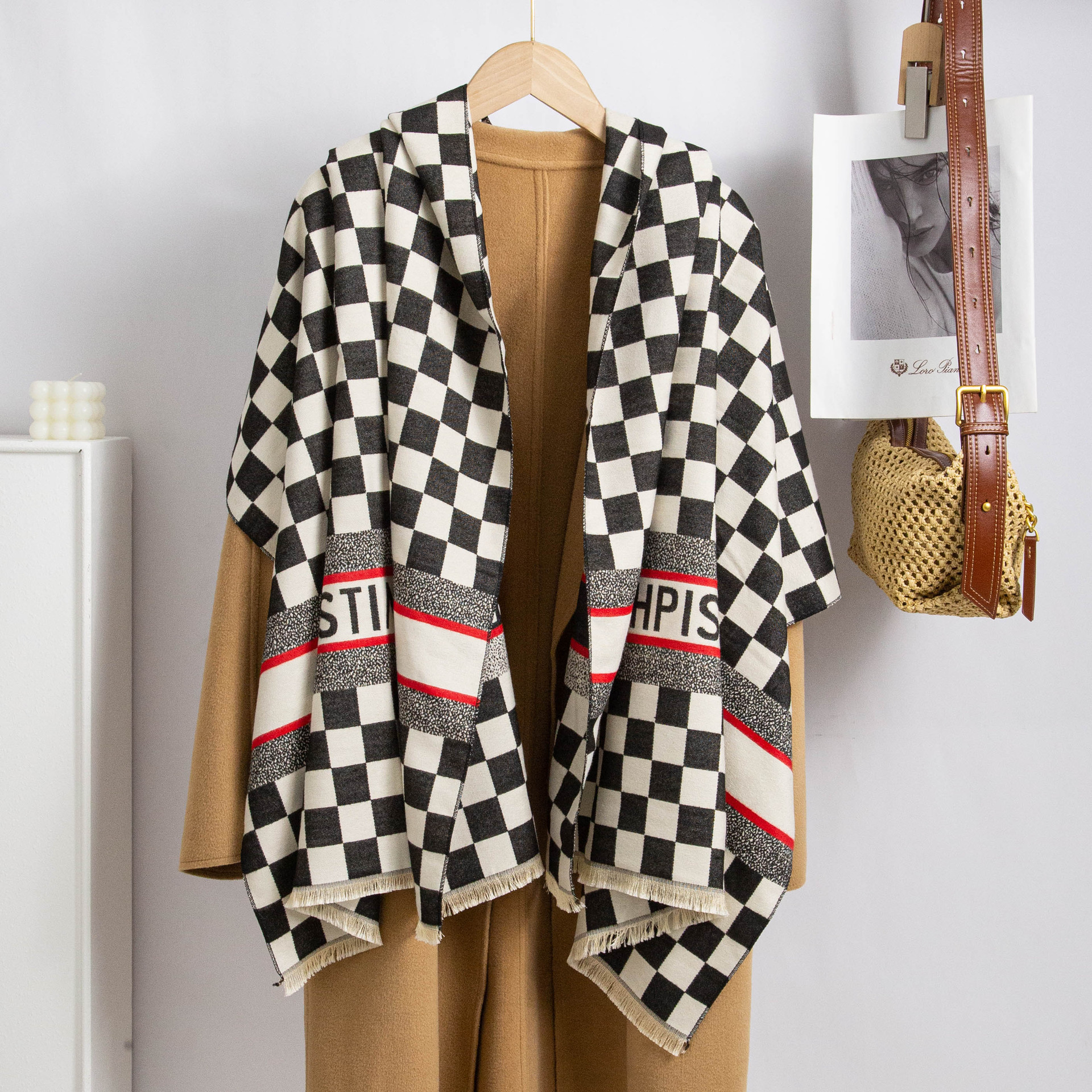 2024 새로운 격자 무늬 스카프 숄 여성 겉옷 가을, 겨울 체커보드 망토 패션 하이 엔드 하이 엔드 인터넷 연예인스토어 가기