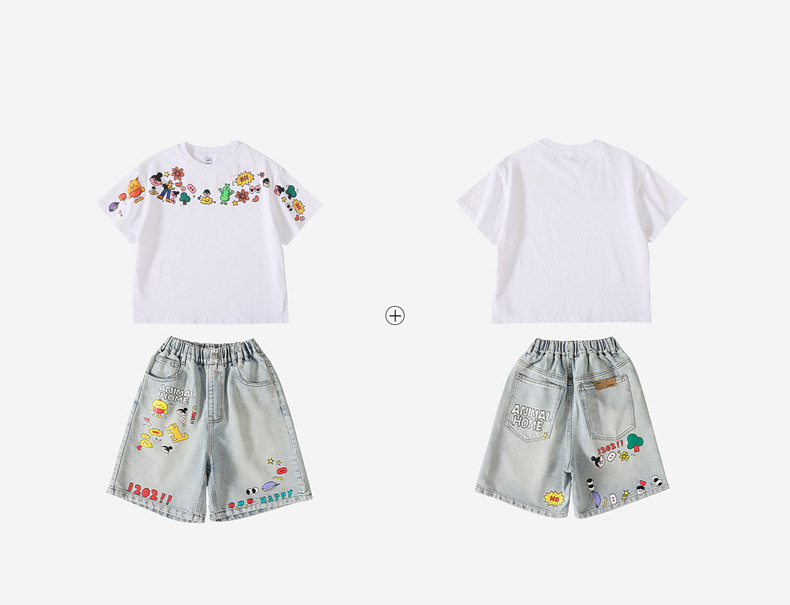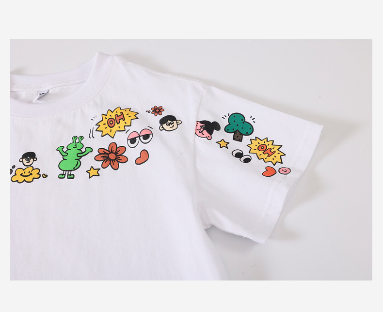 2025 새로운 재미있는 만화 인쇄 어린이 짧은 소매 도매 팬더 라운드 코튼 톱 소년 티셔츠 여름
