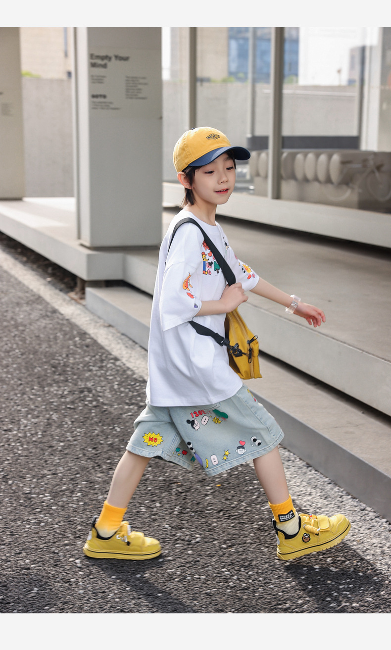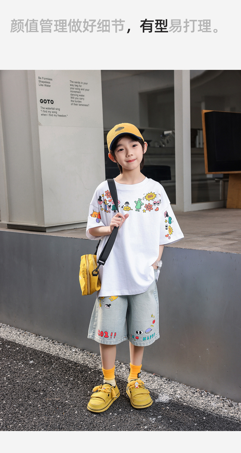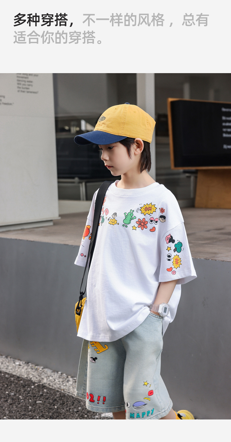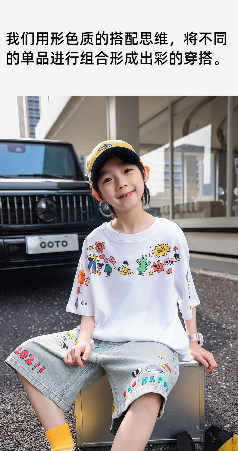 2025 새로운 재미있는 만화 인쇄 어린이 짧은 소매 도매 팬더 라운드 코튼 톱 소년 티셔츠 여름스토어 가기
