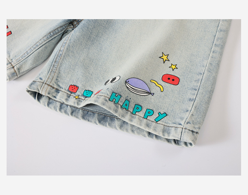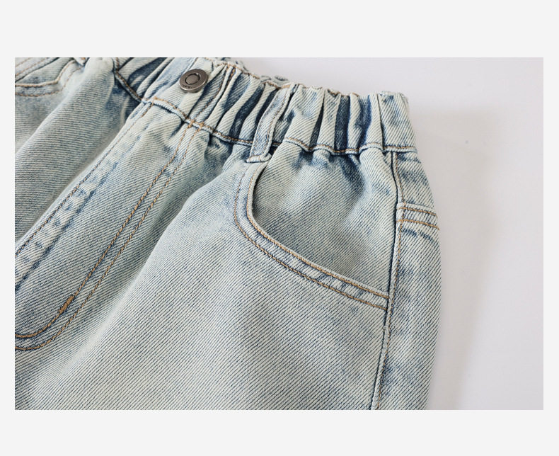 2025秋季新款水洗防褪色男童牛仔裤 熊猫圆圆秋装裤子儿童弯刀裤