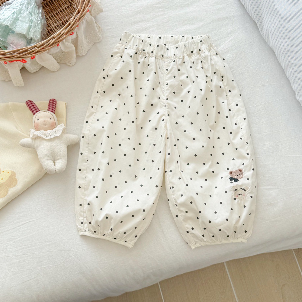 [두 조각] 심황 쿠키! 여성 아기 곰 반팔 티셔츠 폴로 도트 랜턴 바지 귀여운 세트 트렌디