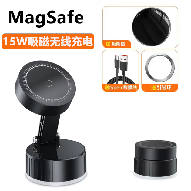 • 15W 무선충전기 [옵시디언 블랙] 접이식★진공 생체공학 흡착 - N52 강력한 자성체★더 넓은 각도★0 충전★잔여 접착제 없음