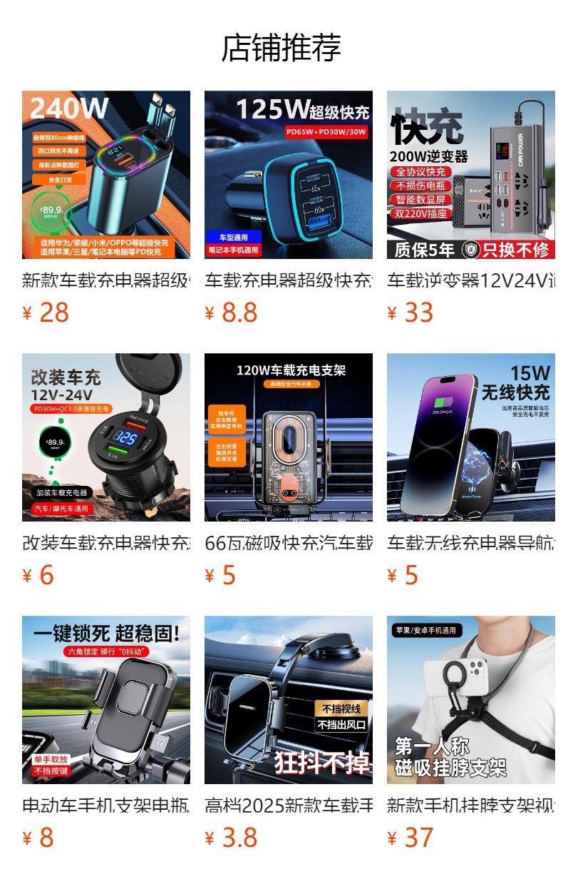2、本店拥有车充、车载支架、无线充、蓝牙等产品