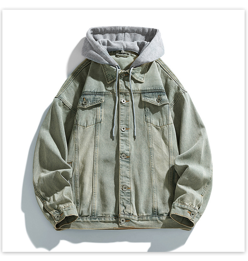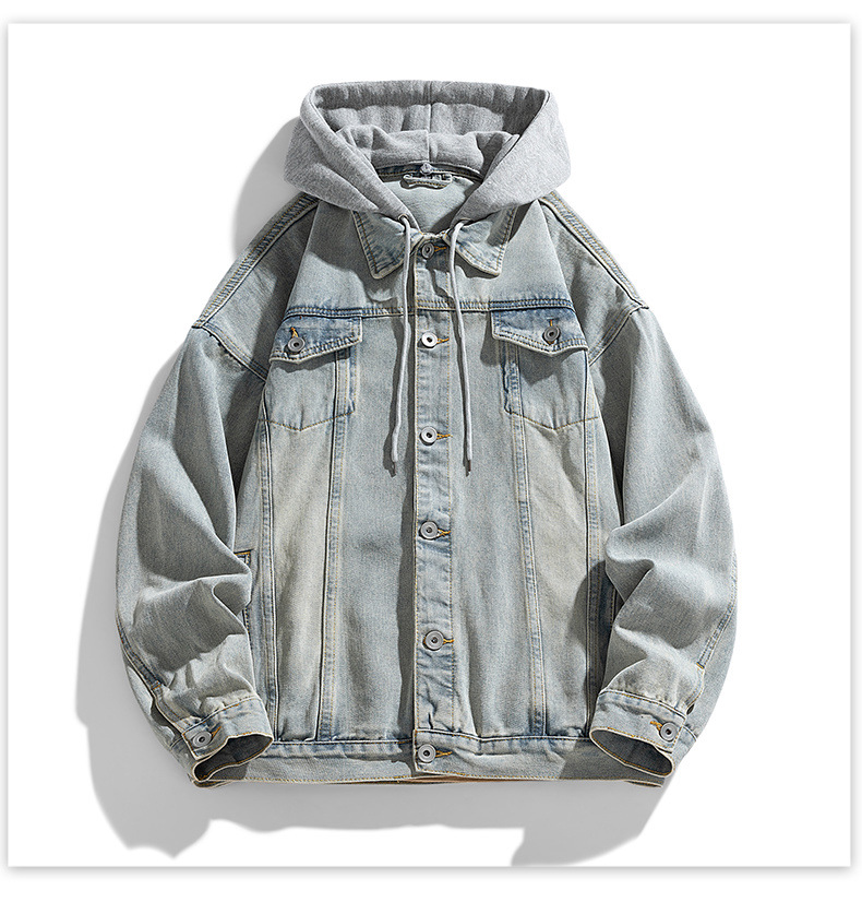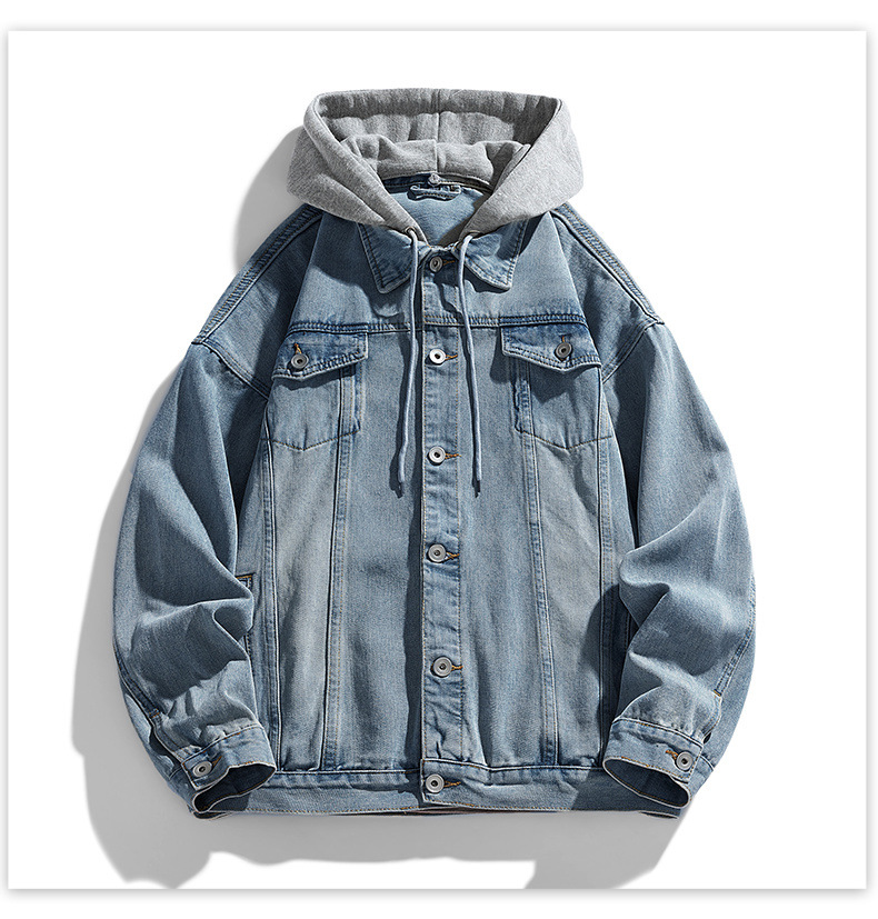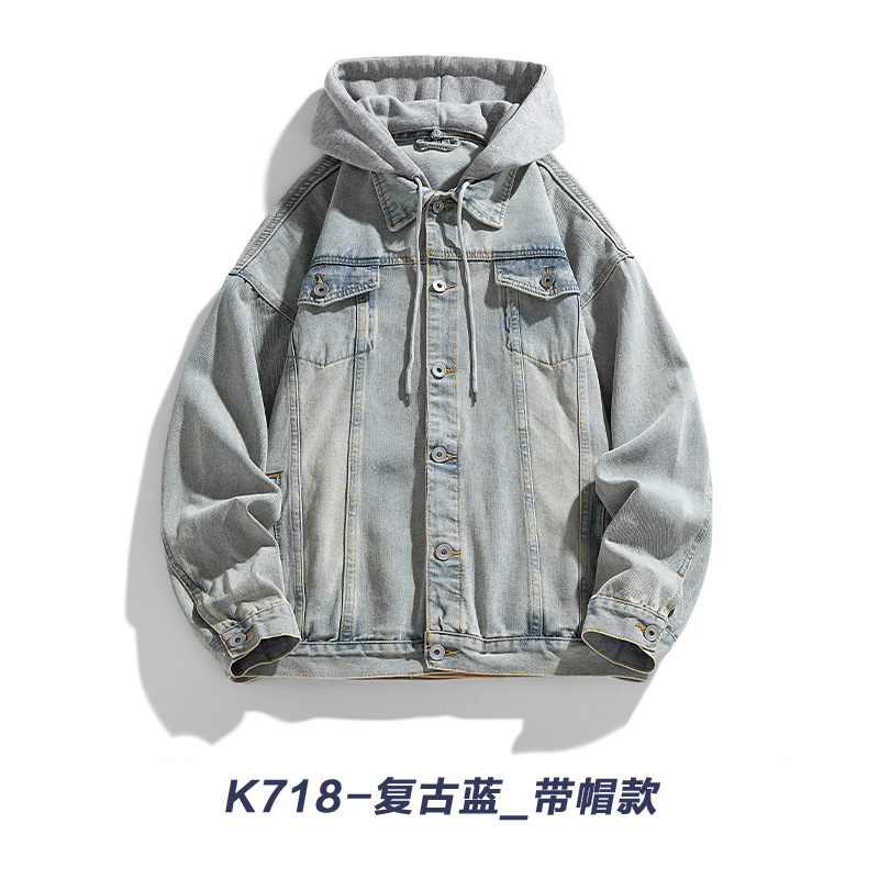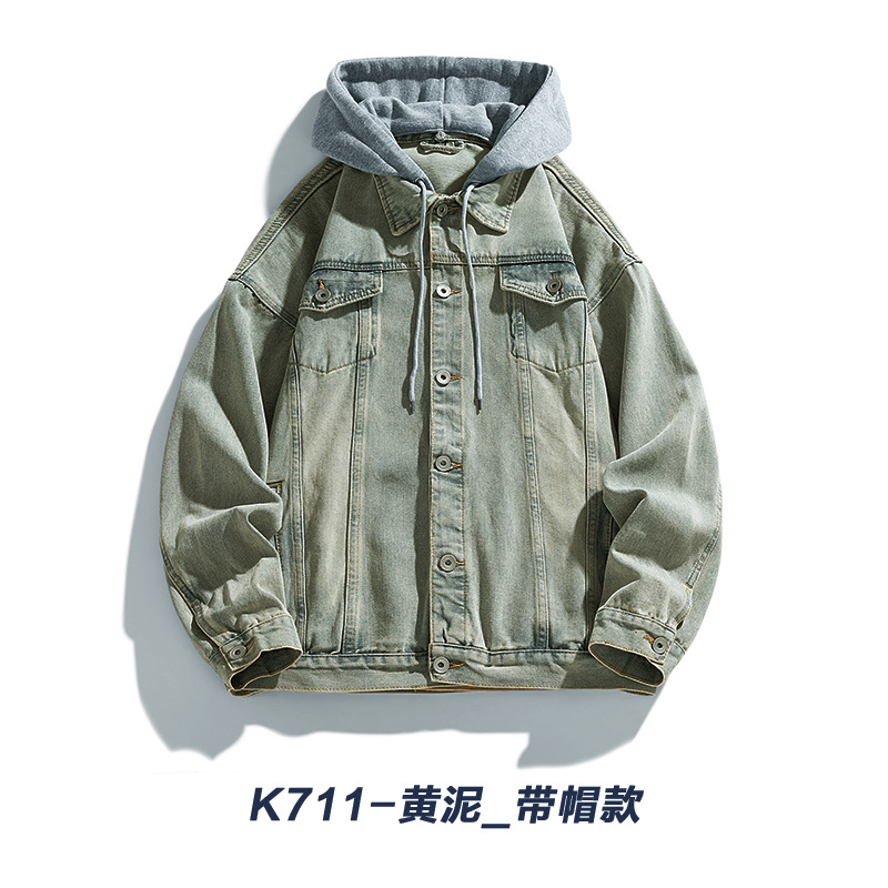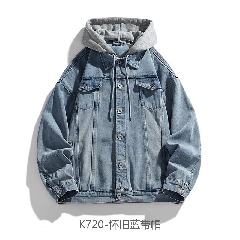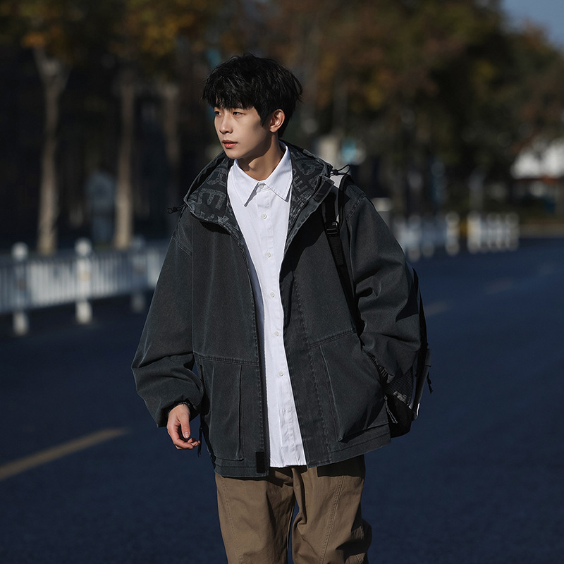 재킷 남성 봄과 가을 패션 브랜드 캐주얼 남성 홍콩 스타일 후드 의류 야외 방풍 의류 남성 데님 코트스토어 가기