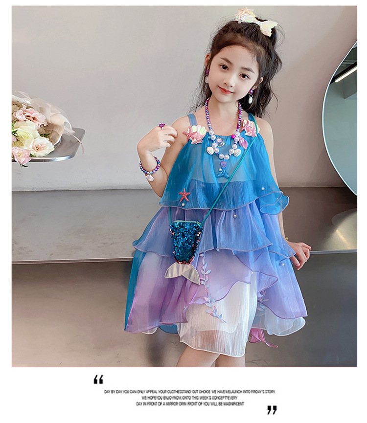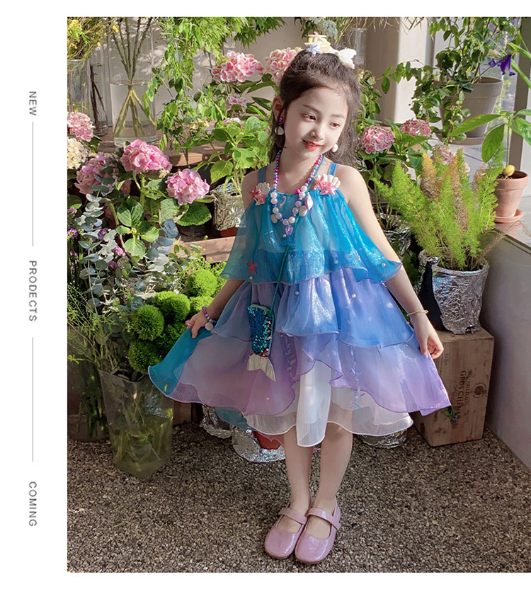 인어 공주 원피스 소녀의 여름 스커트 2025 새로운 어린이 베일 스커트 어린 소녀의 여름 슬링 원피스스토어 가기