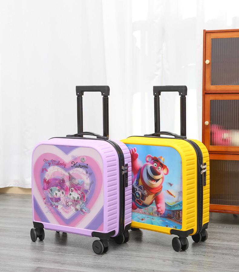 새로운 그라디언트 컬러 유니버설 휠 어린이 수하물 여행 놀이 대용량 여행 가방 만화 귀여운 트롤리 케이스스토어 가기