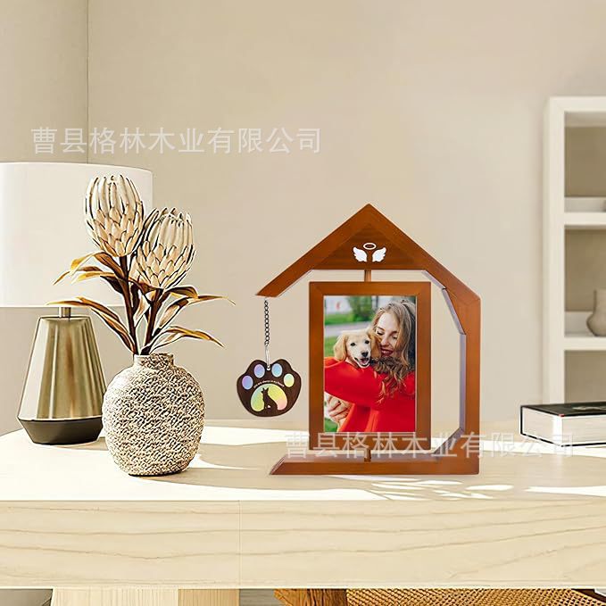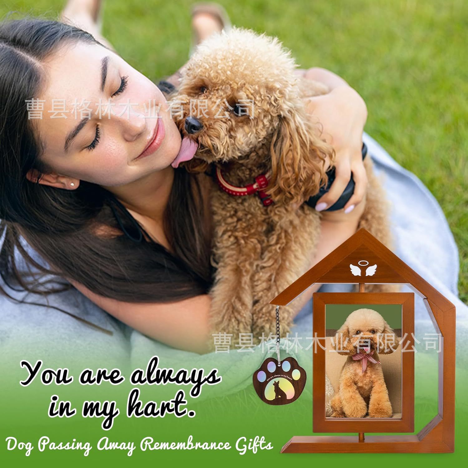 나무 애완 동물 사진 프레임 양면 회전식 사진 프레임 장식품 개 기념 선물 분실된 개 선물 기념품 프레임스토어 가기
