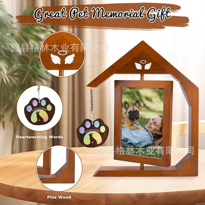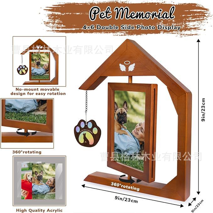 나무 애완 동물 사진 프레임 양면 회전식 사진 프레임 장식품 개 기념 선물 분실된 개 선물 기념품 프레임