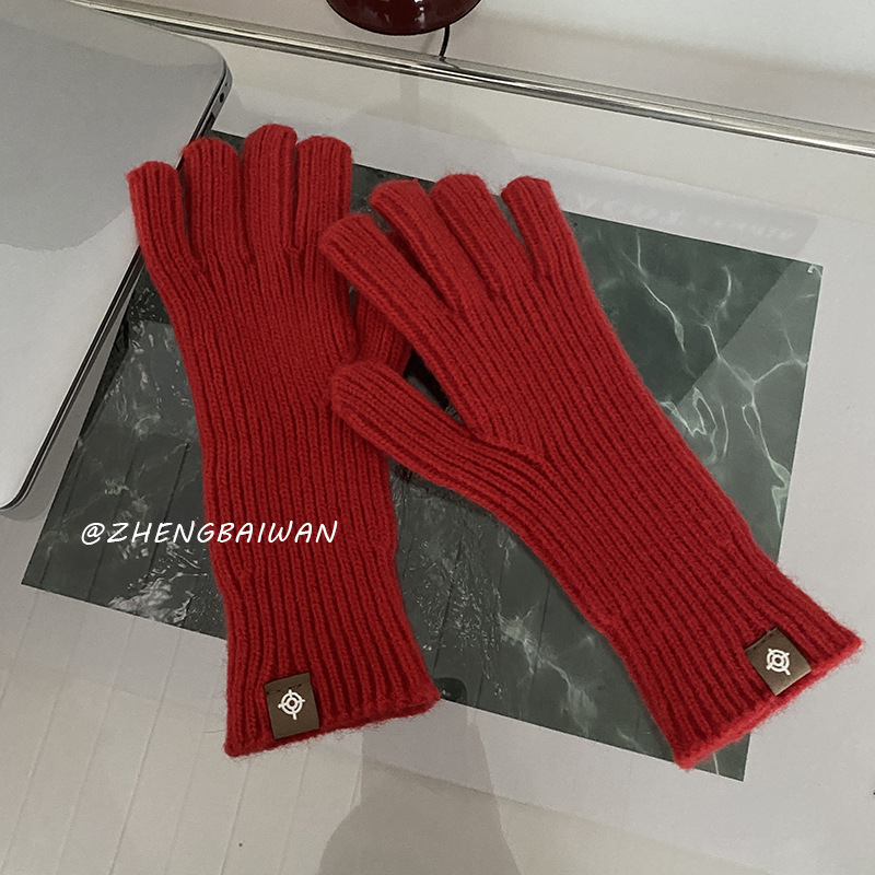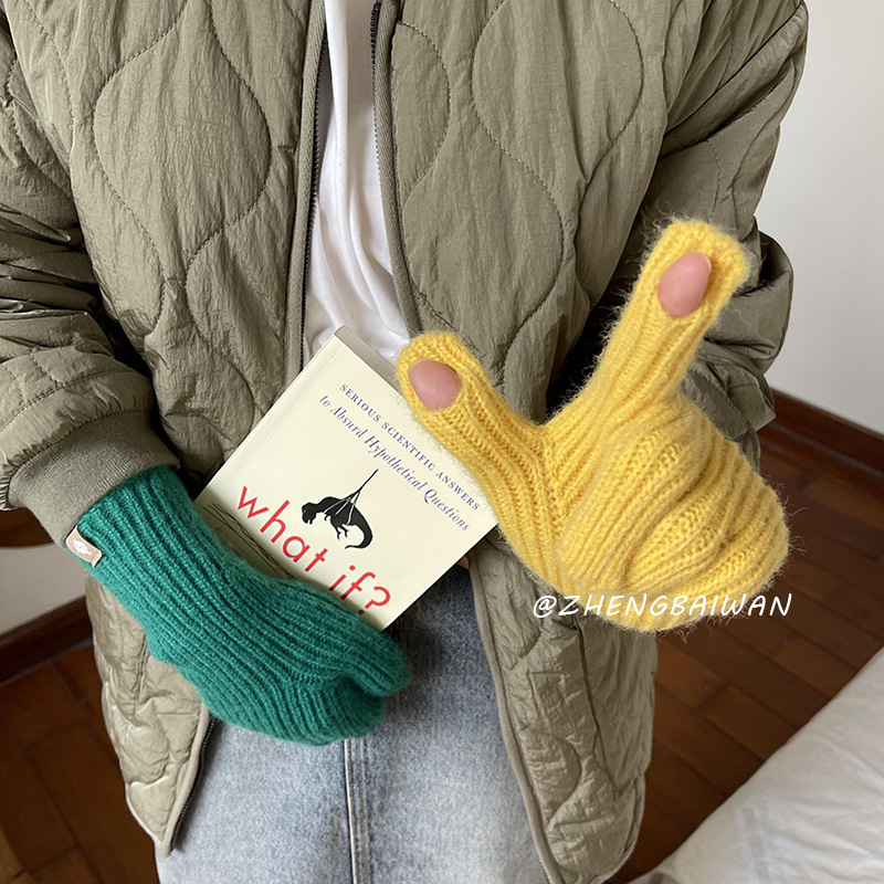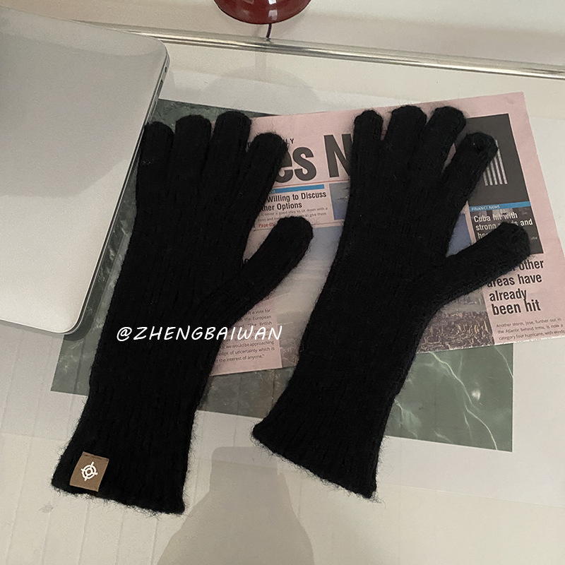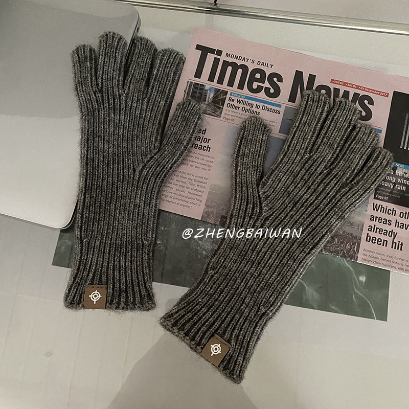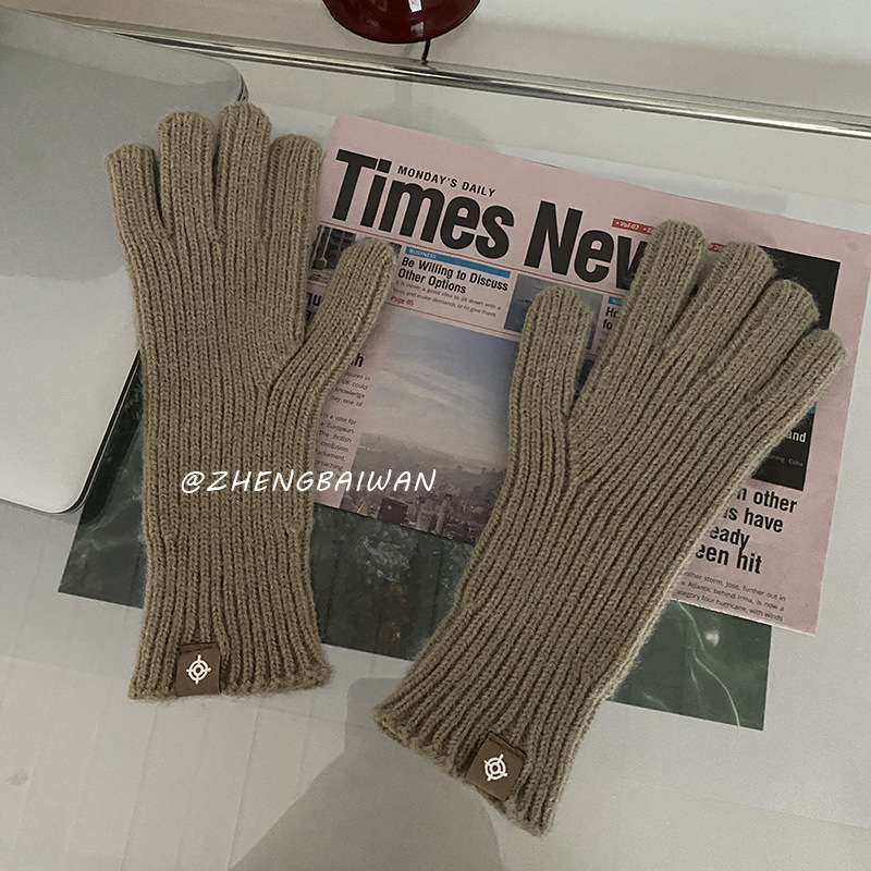 가을과 겨울 귀여운 Ins 양모 니트 장갑 겨울 여성 사이클링 따뜻한 이슬 투손가락 일본 장갑 남녀