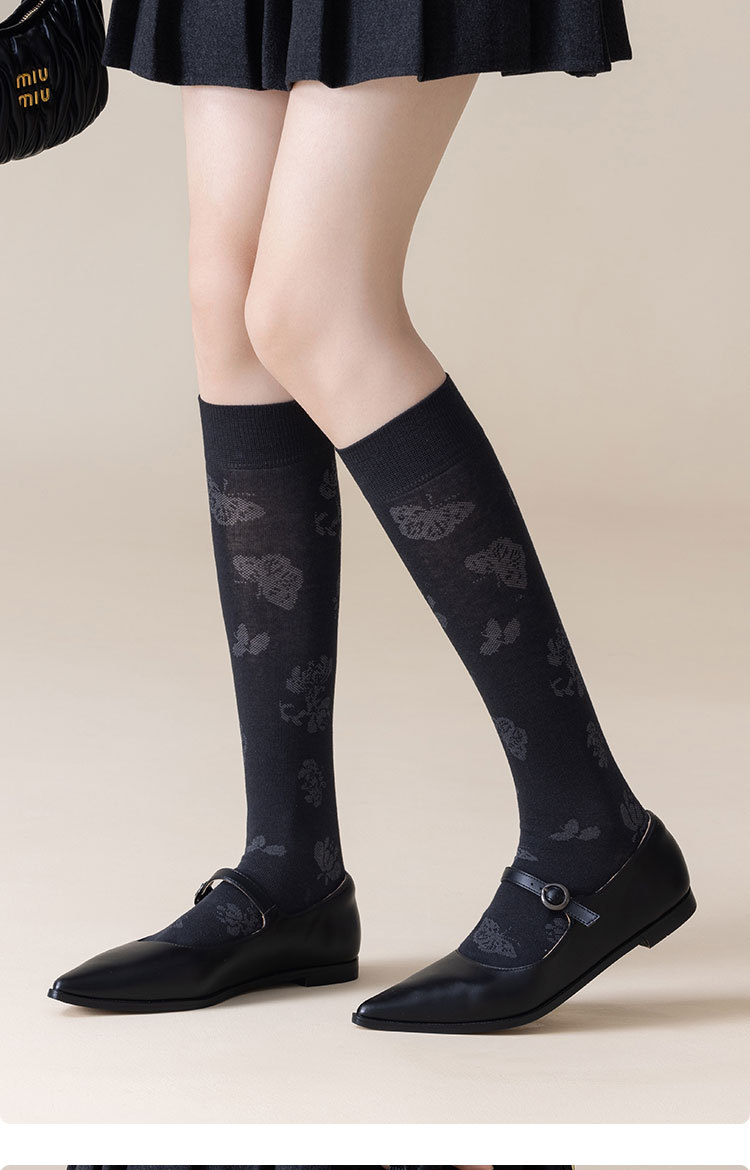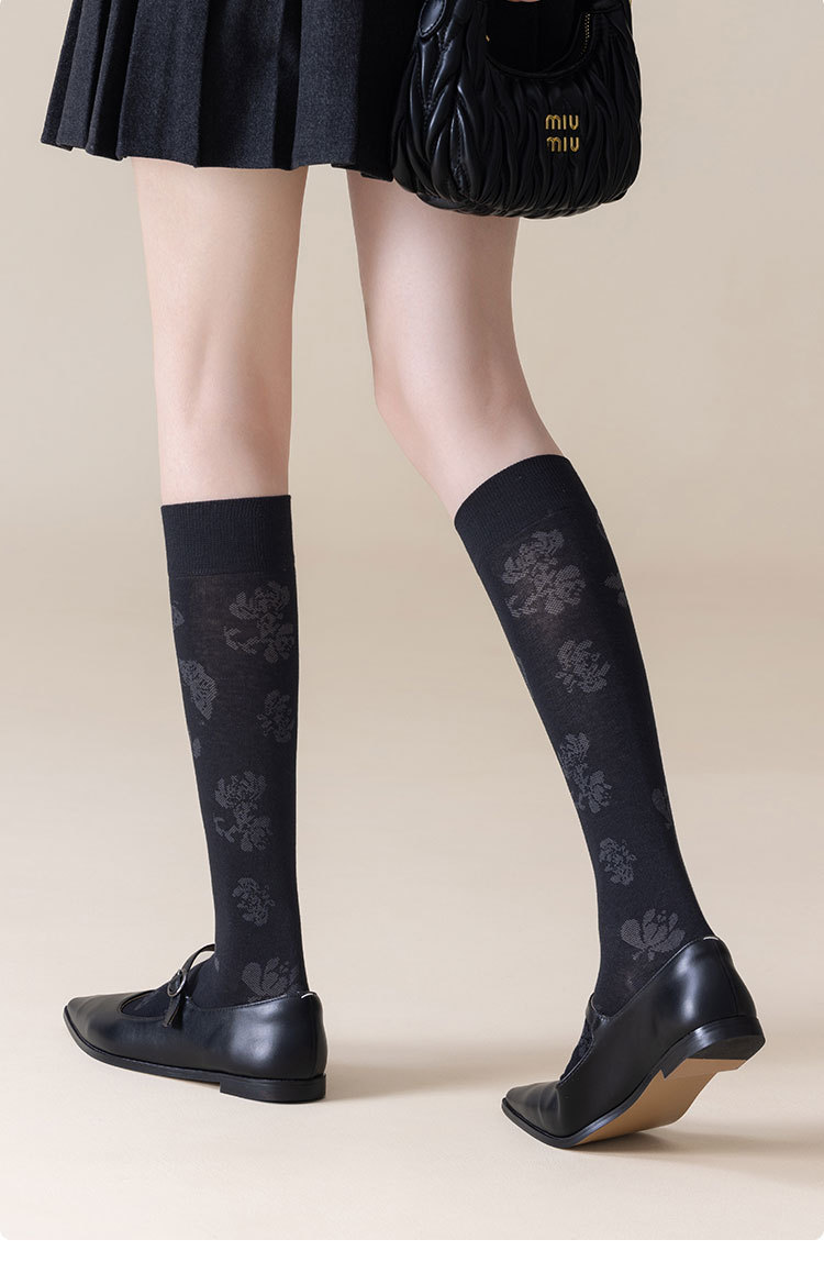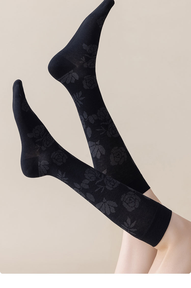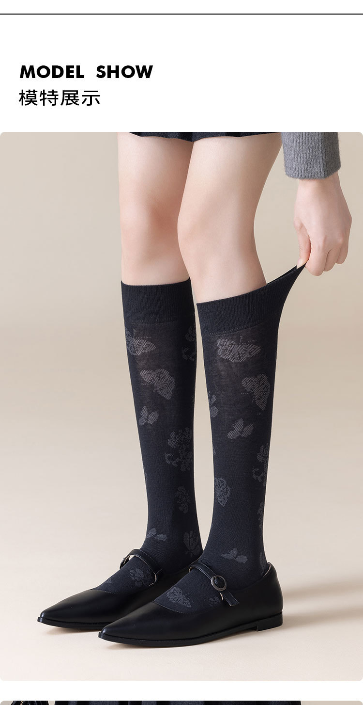 여성용 새끼 양말 가을 새로운 중국 스타일 스타킹 빈티지 꽃 블랙 그레이 나비 꽃 다리 양말