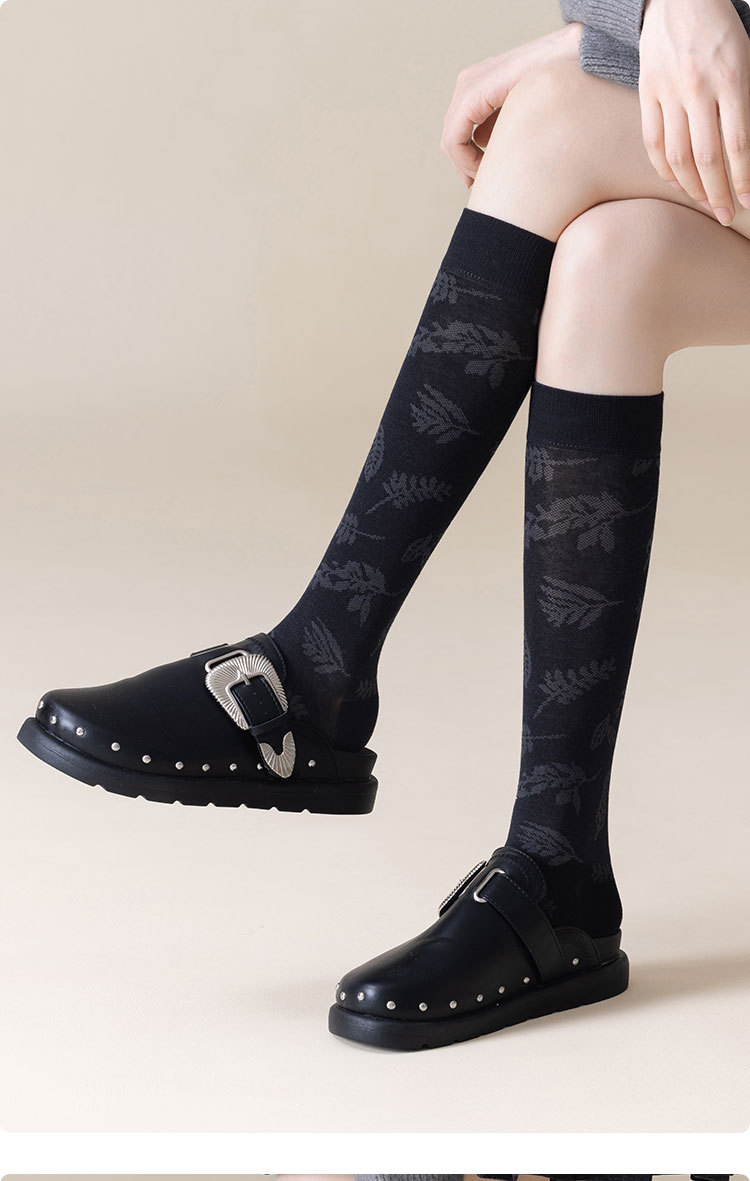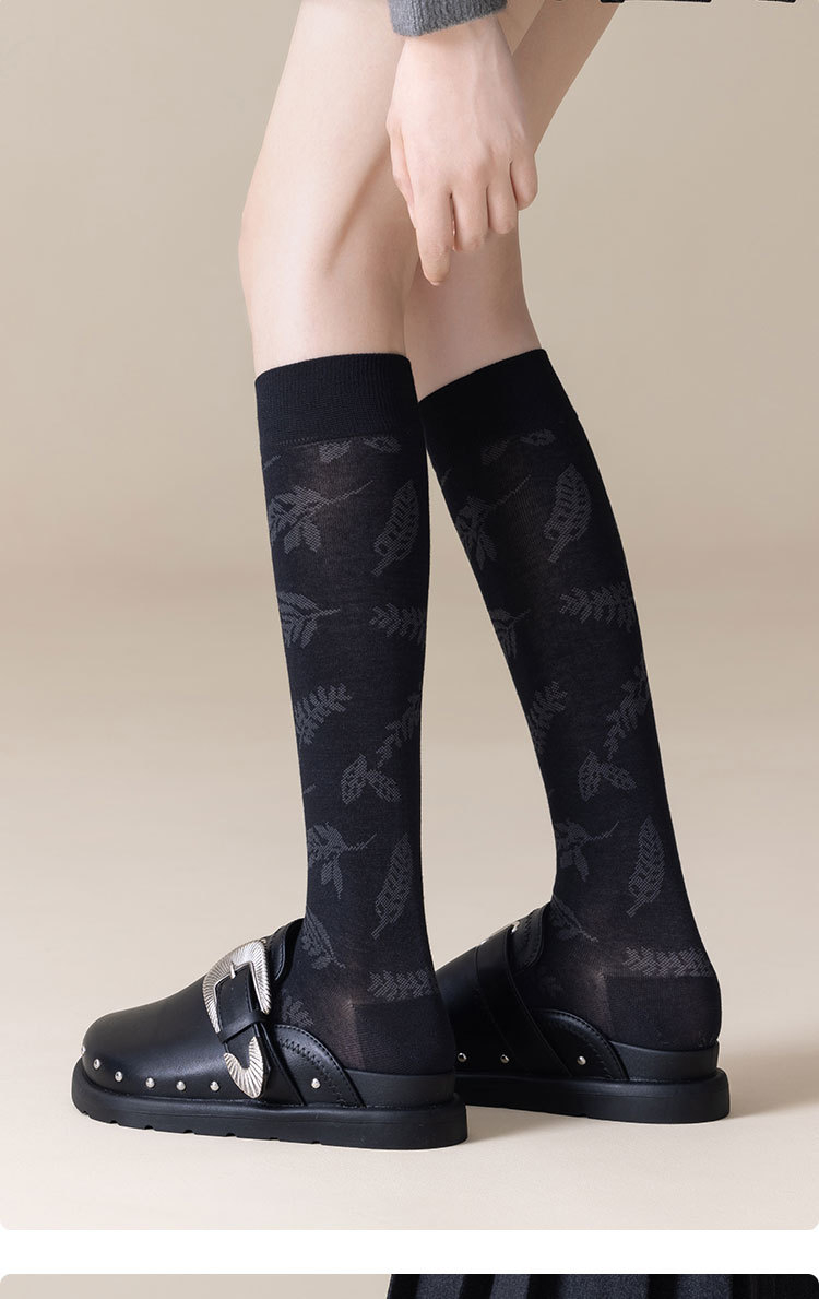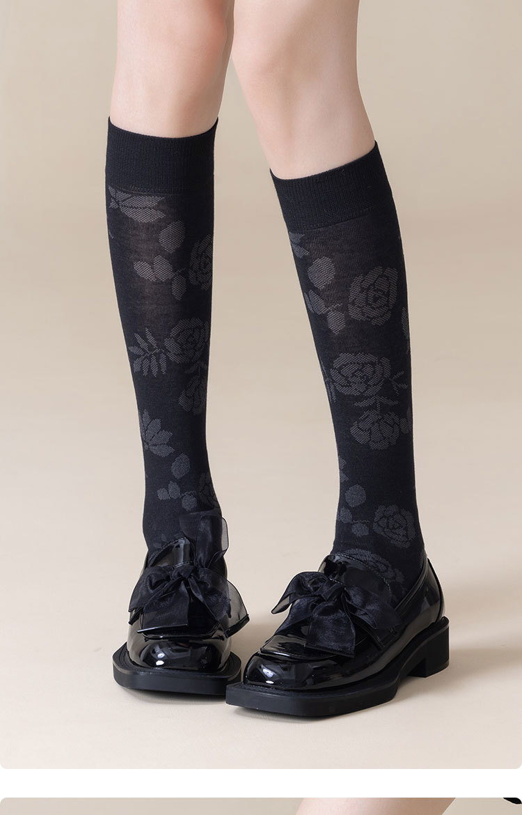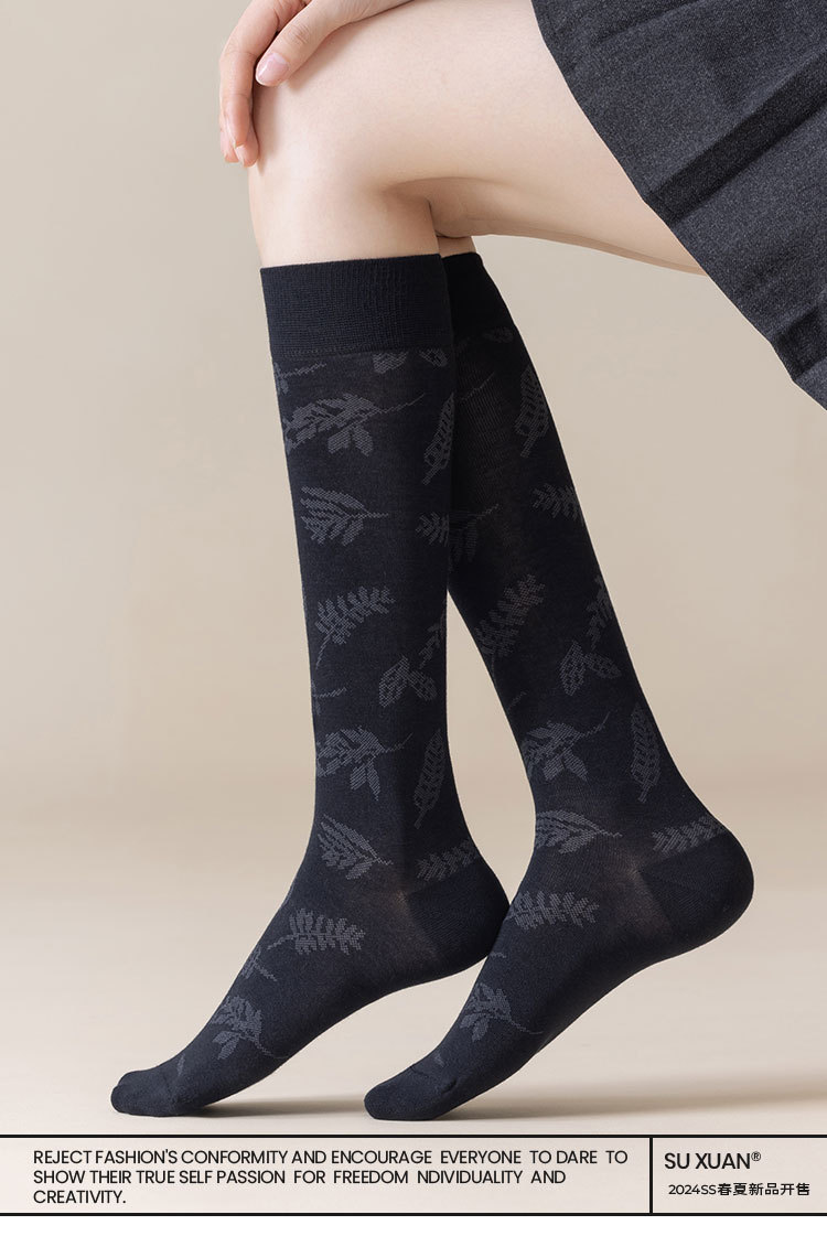 여성용 새끼 양말 가을 새로운 중국 스타일 스타킹 빈티지 꽃 블랙 그레이 나비 꽃 다리 양말