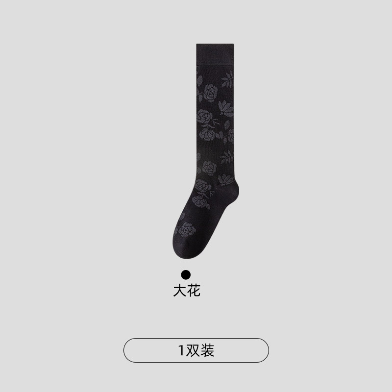 여성용 새끼 양말 가을 새로운 중국 스타일 스타킹 빈티지 꽃 블랙 그레이 나비 꽃 다리 양말스토어 가기