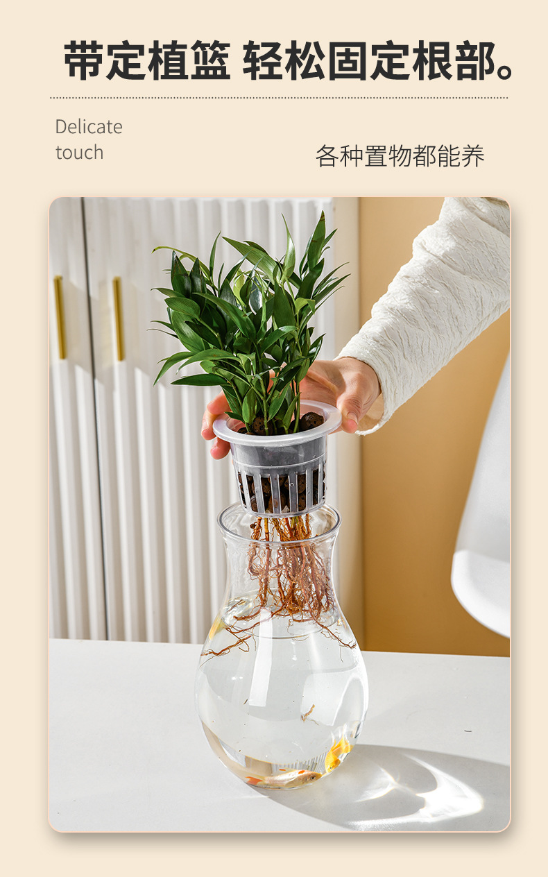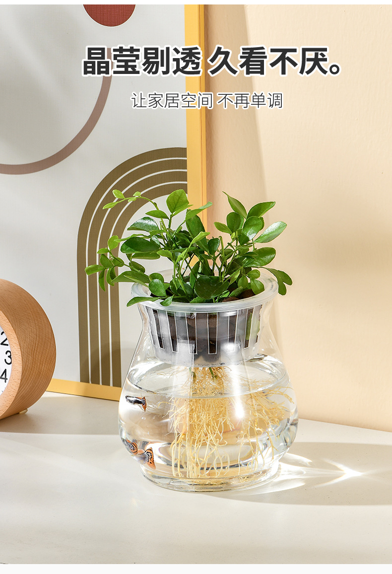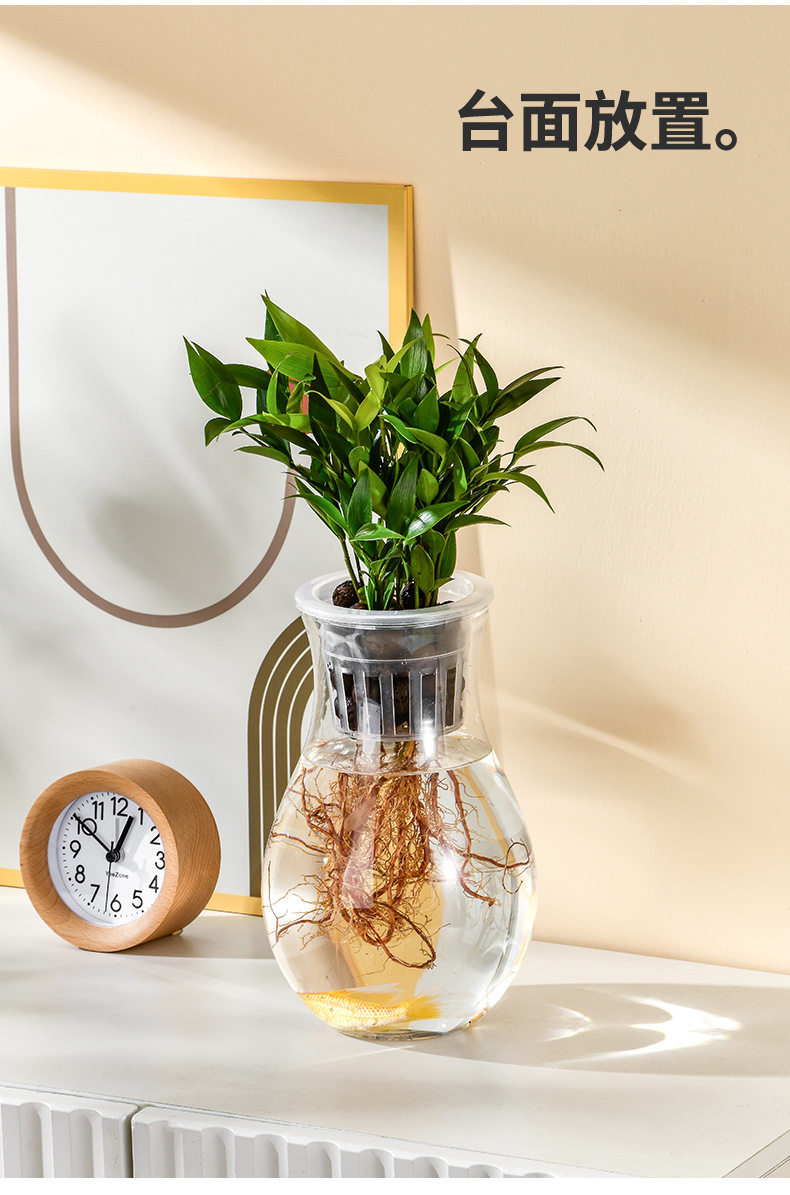 투명 플라스틱 꽃병, 녹색 덩굴, 부자 대나무, 수생 식물 용기, 탁상용 화분, 수경 용기, 장식용 꽃병