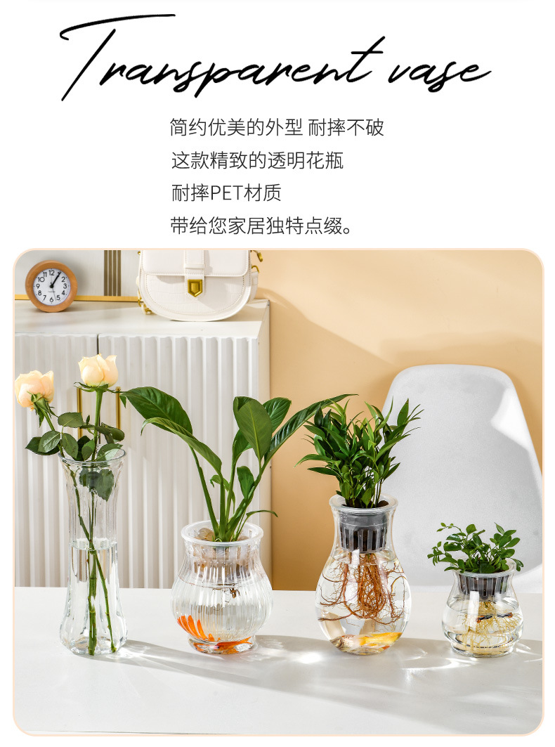 투명 플라스틱 꽃병, 녹색 덩굴, 부자 대나무, 수생 식물 용기, 탁상용 화분, 수경 용기, 장식용 꽃병스토어 가기