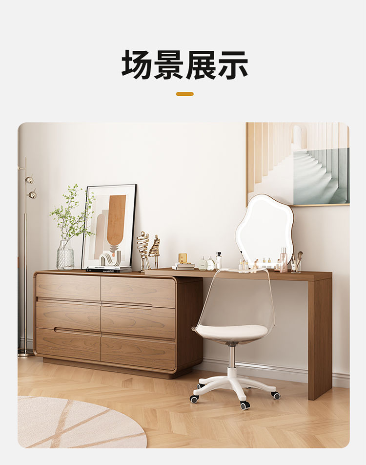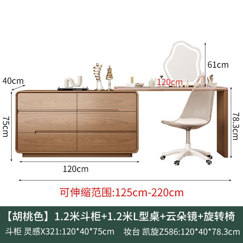 • [원목 생태보드] 1.2m서랍장 + L자형 테이블 + 거울의자