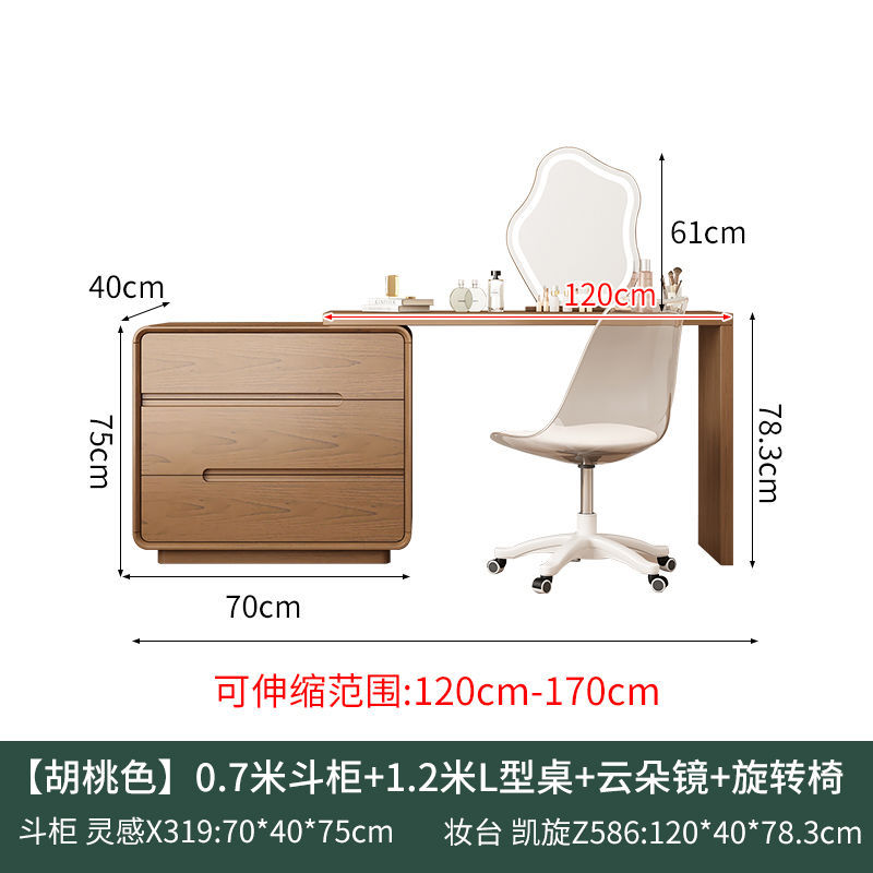 • [원목 생태보드] 0.7m서랍장 + L자형 테이블 + 거울의자