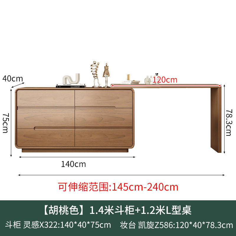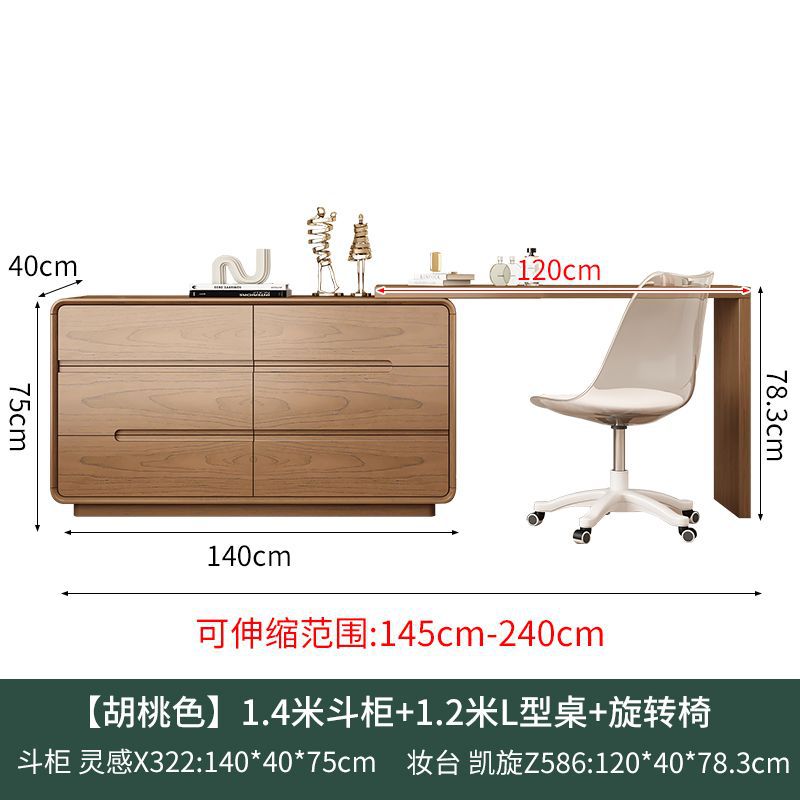 • [원목생태보드] 1.4m서랍장 + L자형 테이블 + 화장거울