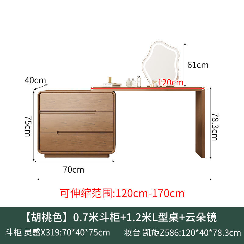 • [원목생태보드] 0.7m서랍장 + L자형 테이블 + 화장거울