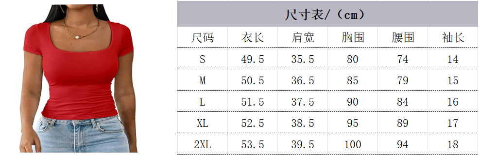 아마존 유럽과 미국의 국경 간 여성 의류 2025 새로운 티셔츠 솔리드 컬러 섹시한 깊은 u 넥 반팔 탑 여성 슬림하고 다재다능함