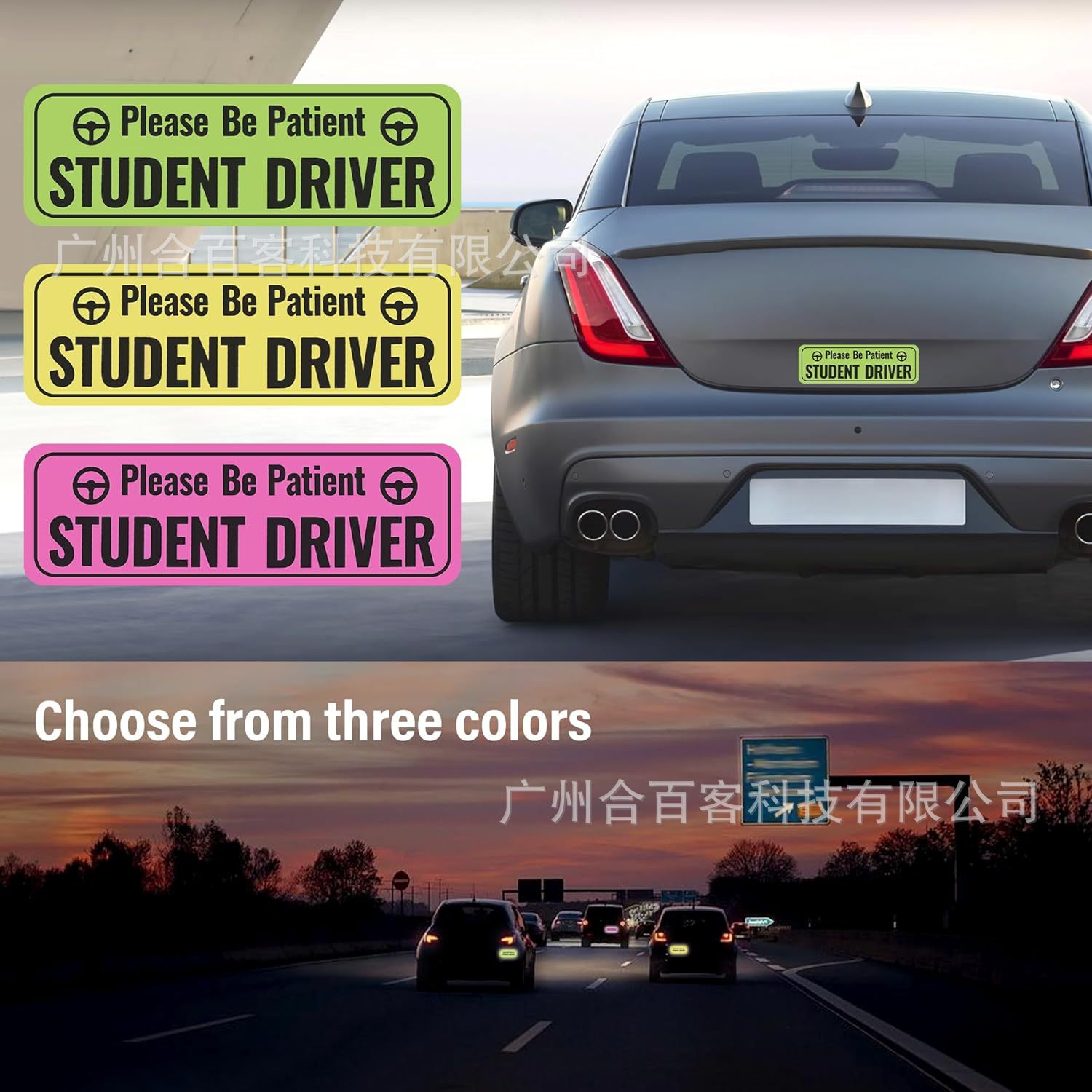 국경 간 자동차 범퍼 스티커 자석 반사 스티커 초보자 학생 인턴십 스티커 안전 운전 팁 표시