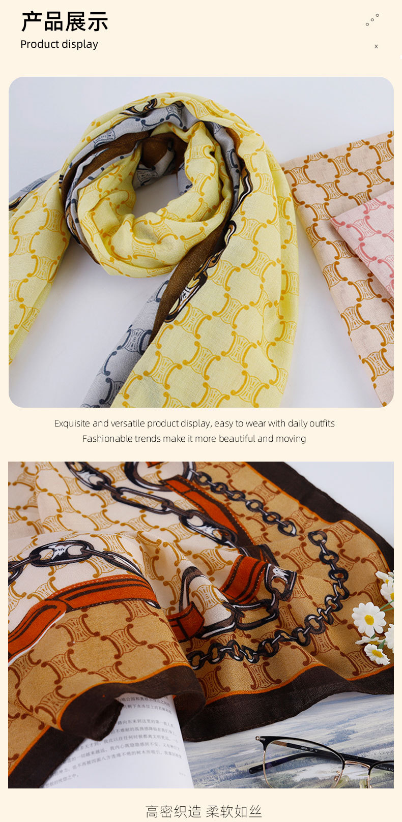가을 겨울 캐주얼 스카프, 패셔너블한 프린트 복고풍 스퀘어 스카프, 여성용 부드럽고 피부 친화적인 스카프, 숄 스카프, 실크 스카프스토어 가기