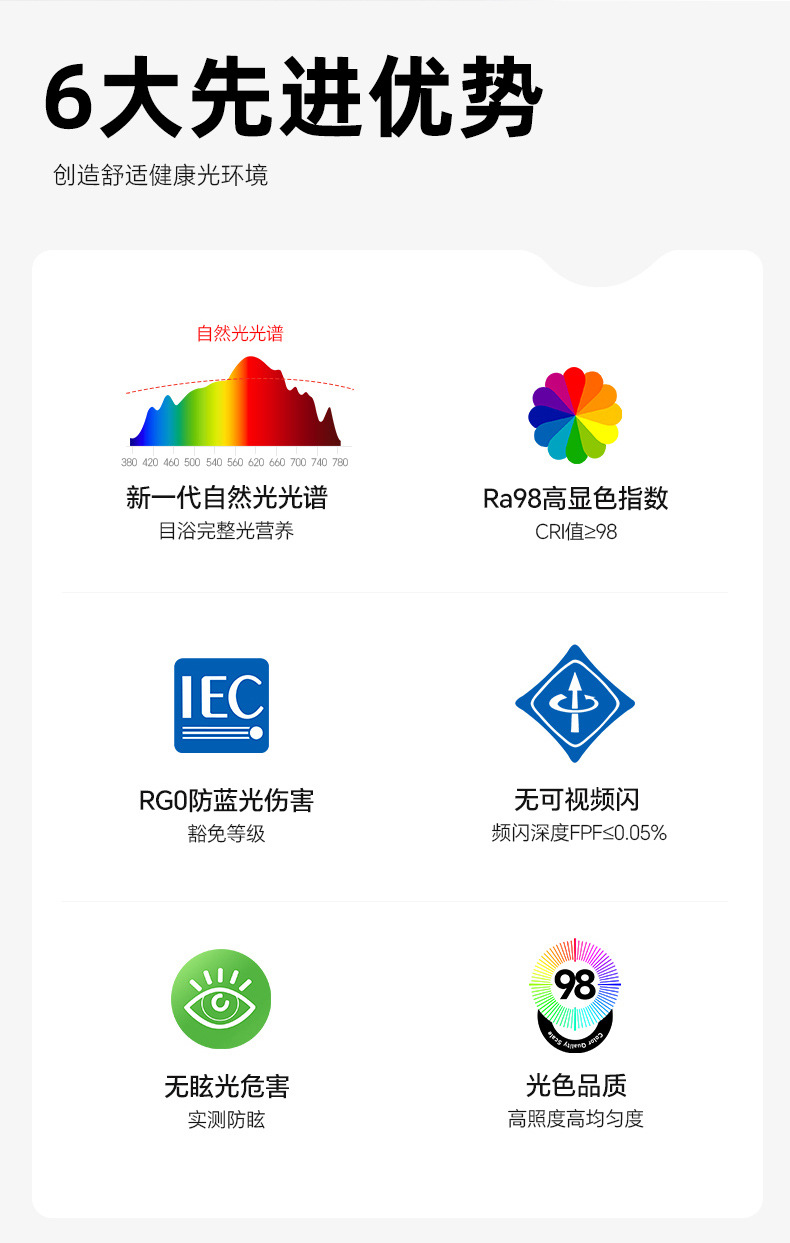 • 전체 스펙트럼 진정한 눈 보호 - 최대 전력 100W 백색광 - 3줄의 램프 비드 - 자연광에 더 가깝습니다.