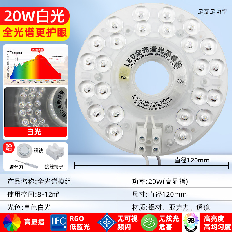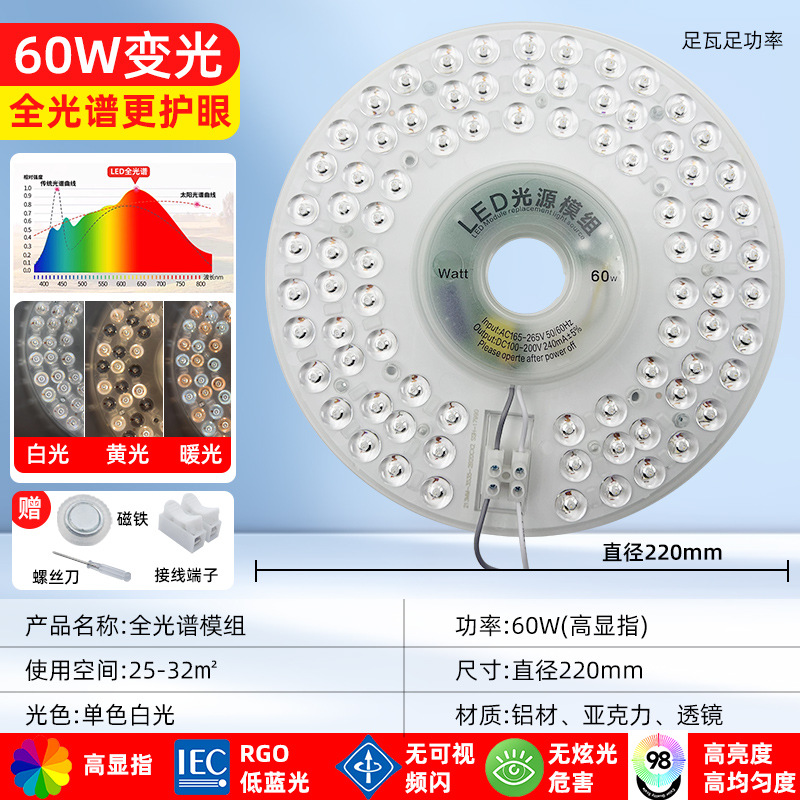 전체 스펙트럼 LED 천장 코어 모듈 램프 디스크 교체 코어 에너지 절약형 슈퍼 밝은 침실 원형 개조 디스크 램프 보드