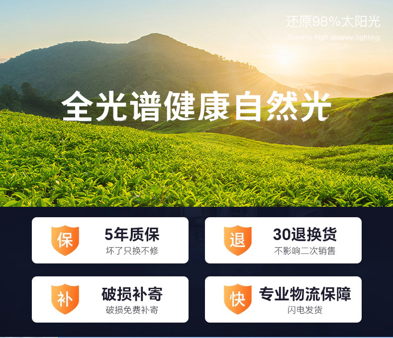 • 전체 스펙트럼 진정한 눈 보호 - 최대 전력 60W 백색광 - 3줄의 램프 비드 - 자연광에 더 가깝습니다.