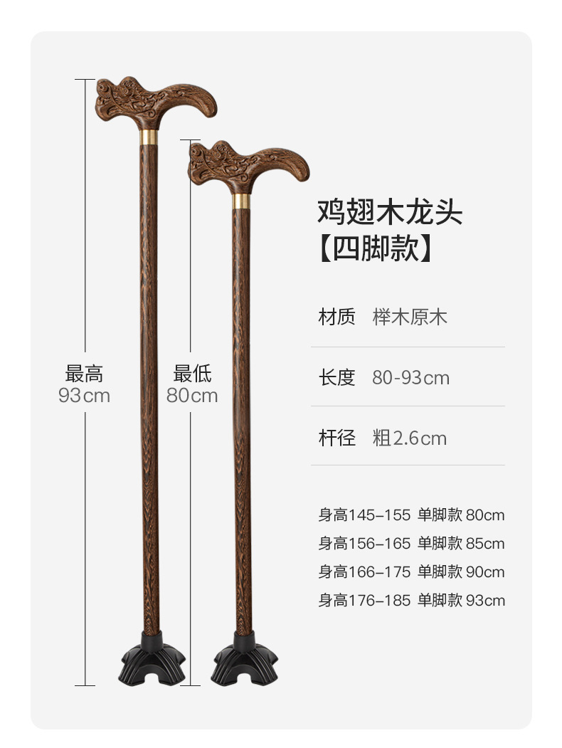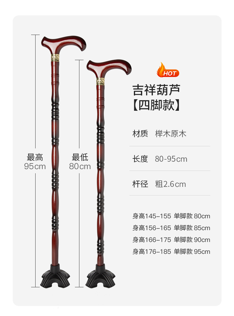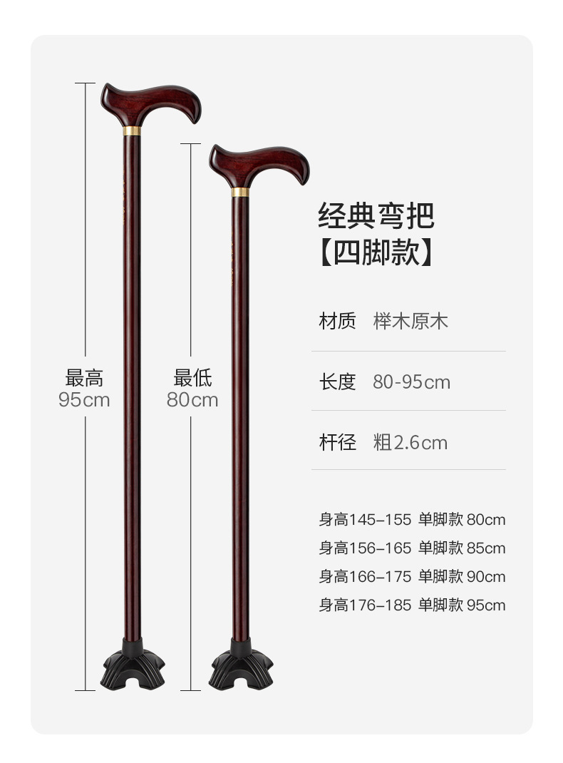 독일에서 수입한 노인용 너도밤나무 나무 지팡이, 노인용 4발 미끄럼 방지 지팡이, 경량 보행 지팡이스토어 가기