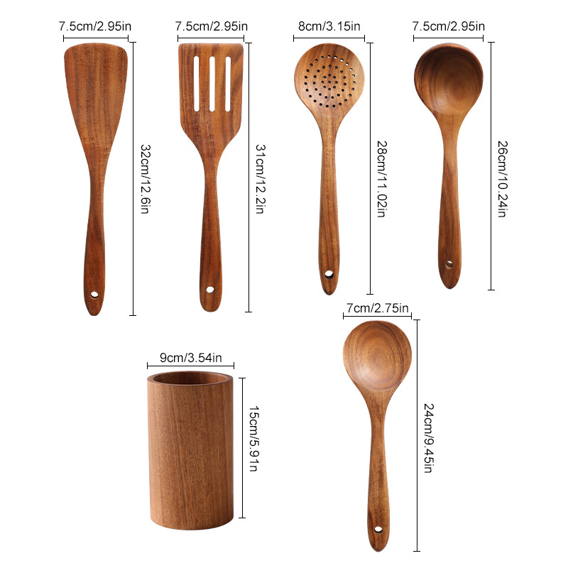 Niu Carpenter 국경 작은 잎 아카시아 나무 주걱 요리 냄비 주걱 수프 스푼 나무 주걱 티크 주방기구 세트 나무