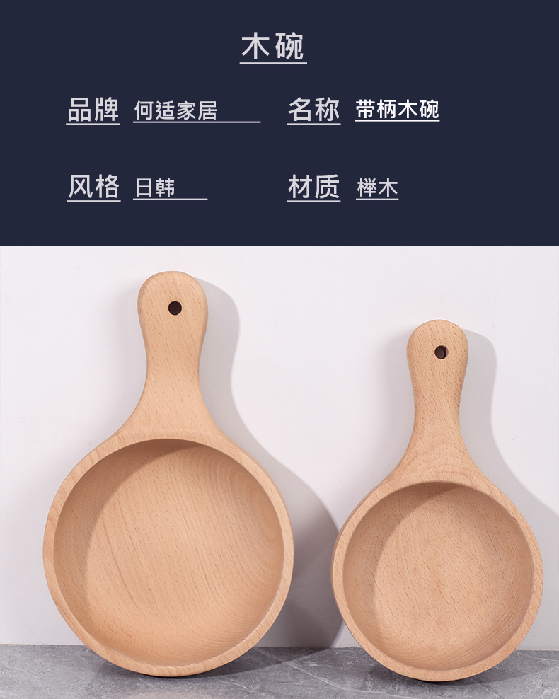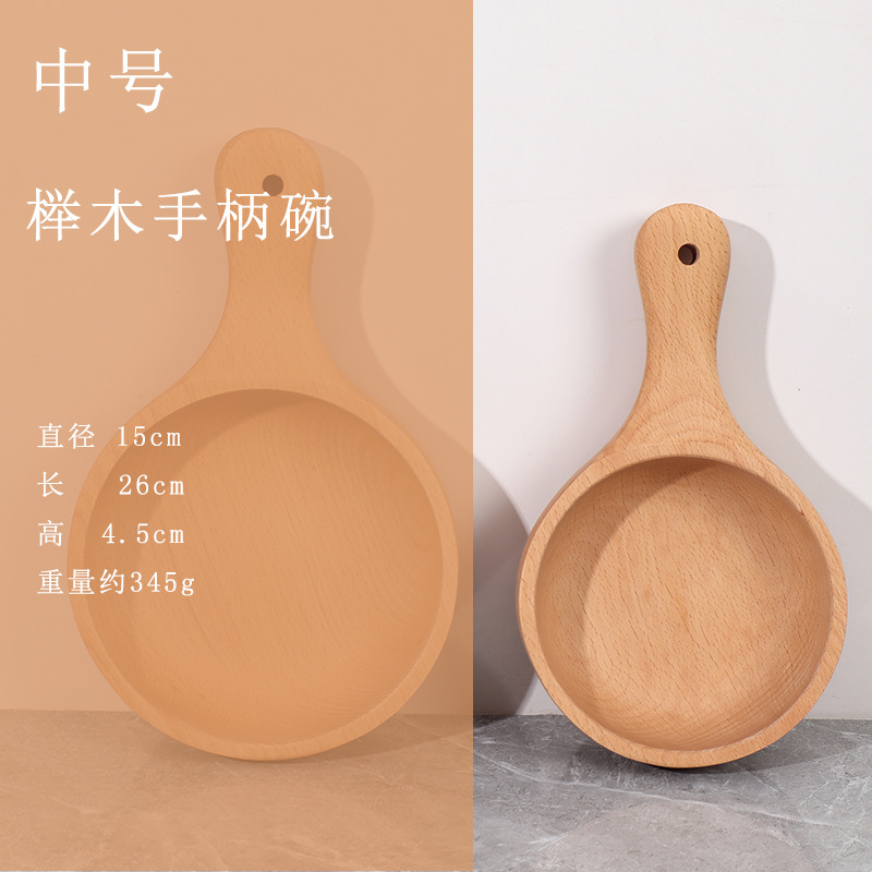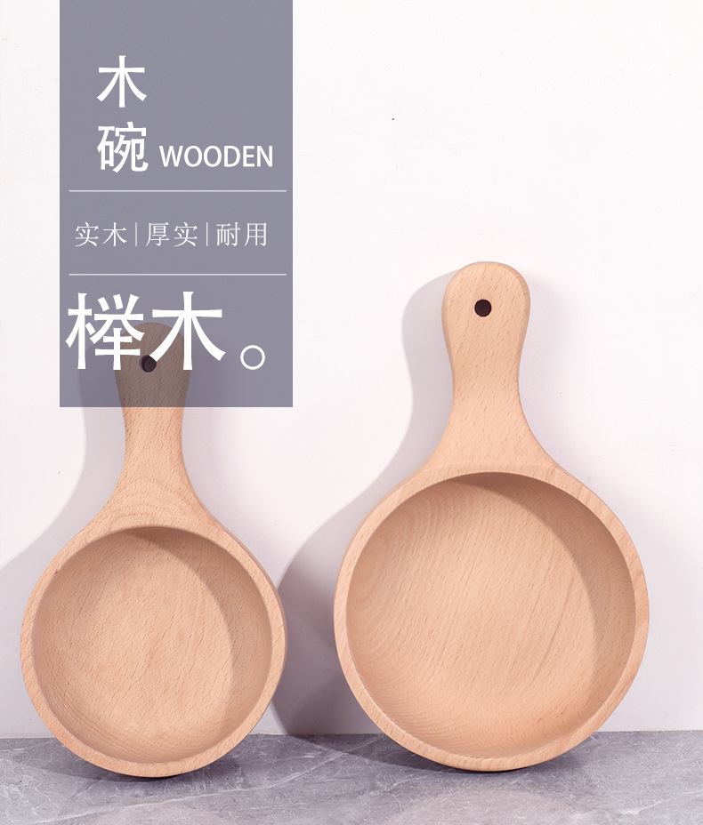 일본과 한국 스타일의 비취 손잡이 샐러드 그릇, 나무 인스턴트 국수 피클 과일 그릇, 물 국자로 사용할 수 있는 나무 그릇