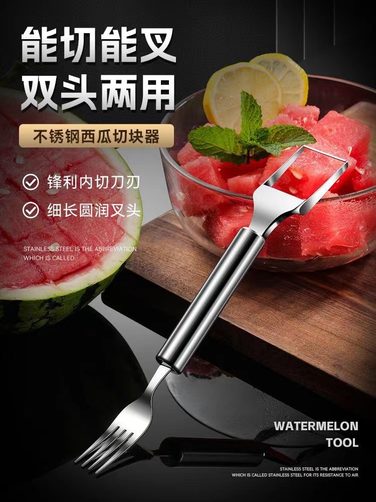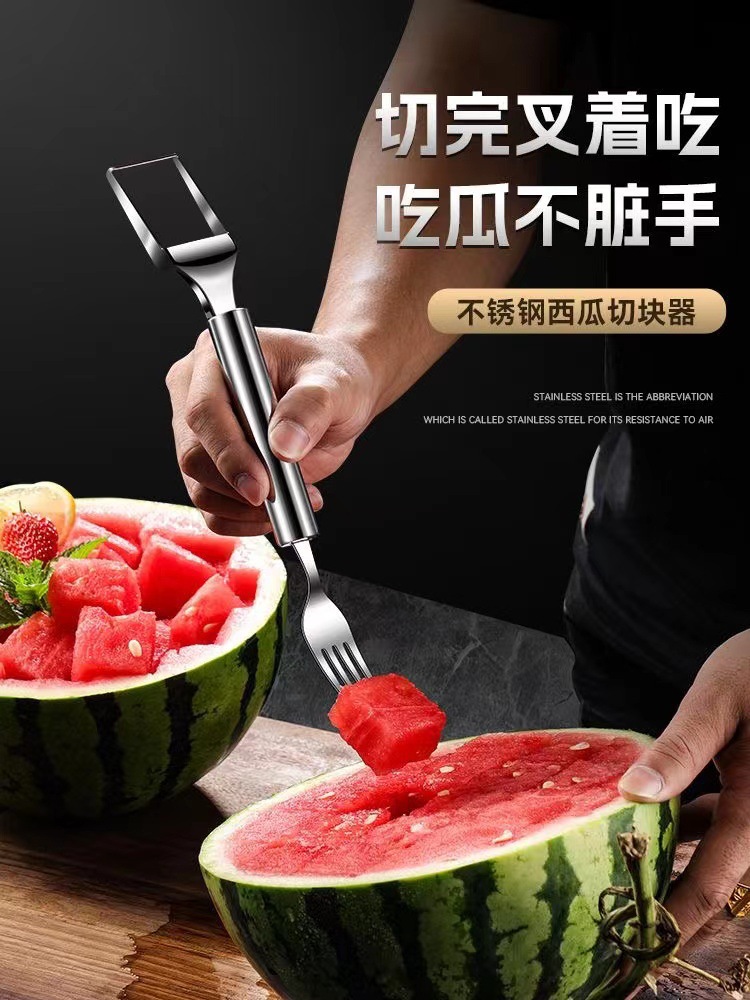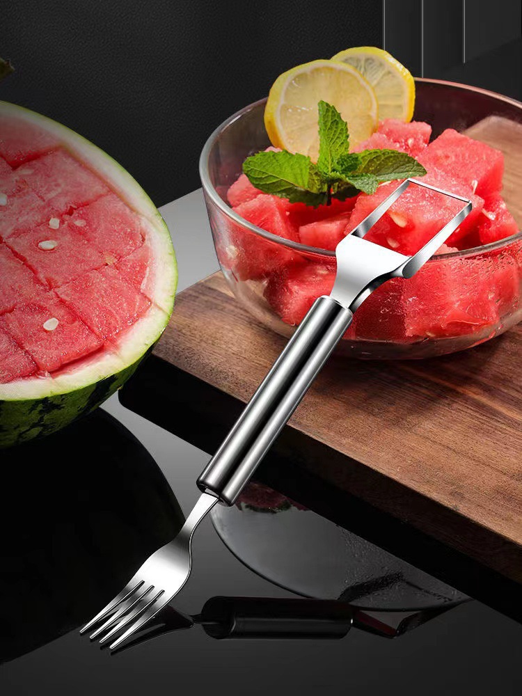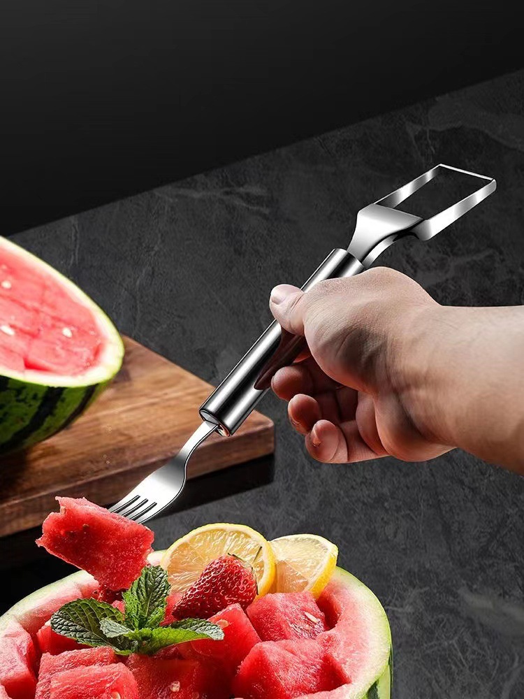 창조적 인 스테인레스 스틸 수박 커터 오픈 수박 커터 디싱 도구 펄프 과일 포크 과일 나누기